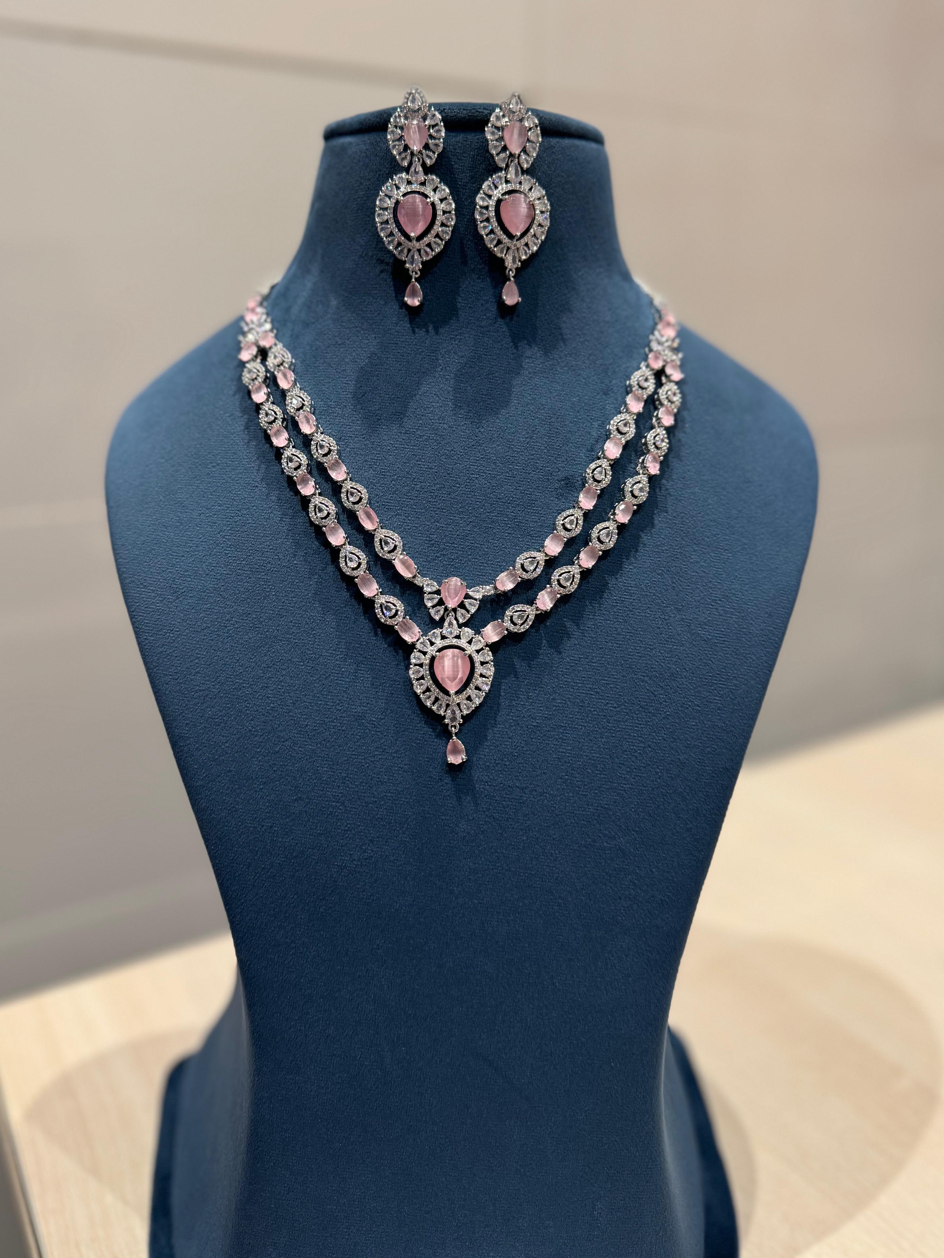 Bollywood CZ Necklace with Earrings CZ Luxury Design Anniversary Gift. American DIAMOND Choker NECKLACE Set With Earring Combo Cz Stone Made Designer Indian Bridal Necklace Dangle Earring Fashion Jewellery.