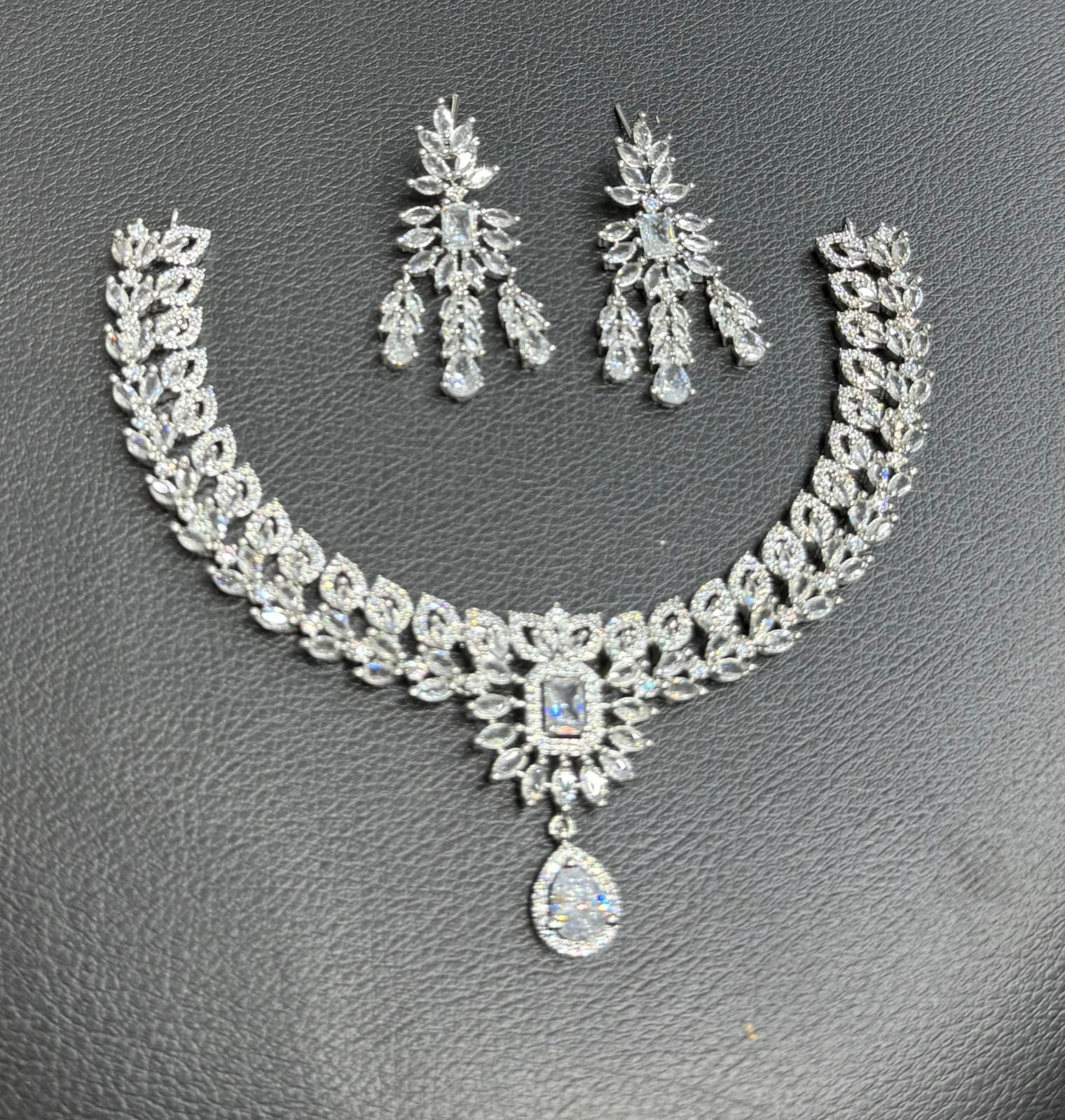 Sparkling Indian Pearl Necklace Earrings Set, Bridal Kundan Necklace Set, Bollywood AD Jewelry Set, Wedding Indian Kundan Choker Set, Pakistani Pearl Jewelry Set