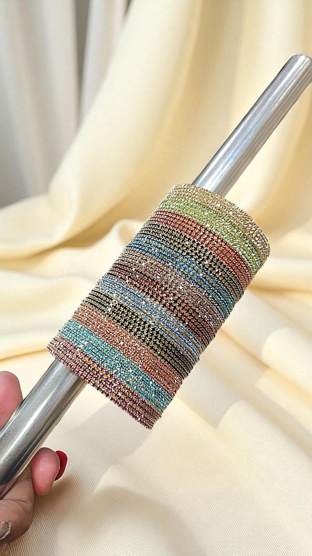 This Fitting Stone Bangles Set comes with 12 beautiful colors, each color containing 4 perfectly crafted bangles. Designed for a snug and elegant fit, these bangles are adorned with sparkling stones and built on a strong, high-quality base. What you see is what you get — we dispatch exactly what’s shown in the pictures!