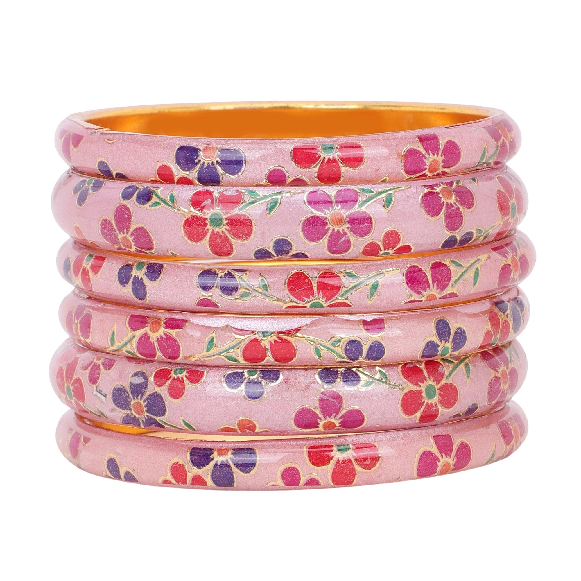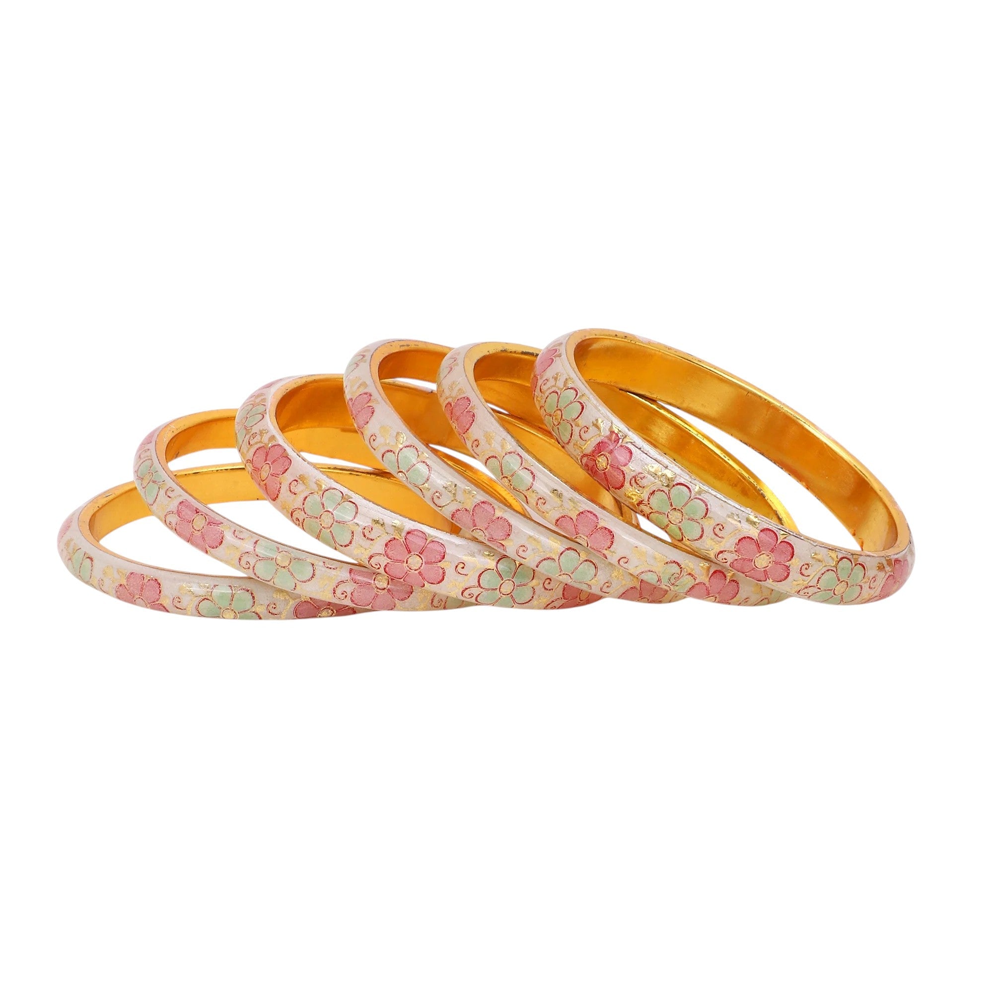 Brighten up your jewelry collection with this Set of 6 Pink & Pista Bracelets. Designed in a stunning pastel combination of pink and pista green, these kada-style bangles bring a perfect mix of elegance and charm. Lightweight yet durable, they are ideal for weddings, festive wear, or daily styling with both ethnic and modern outfits.