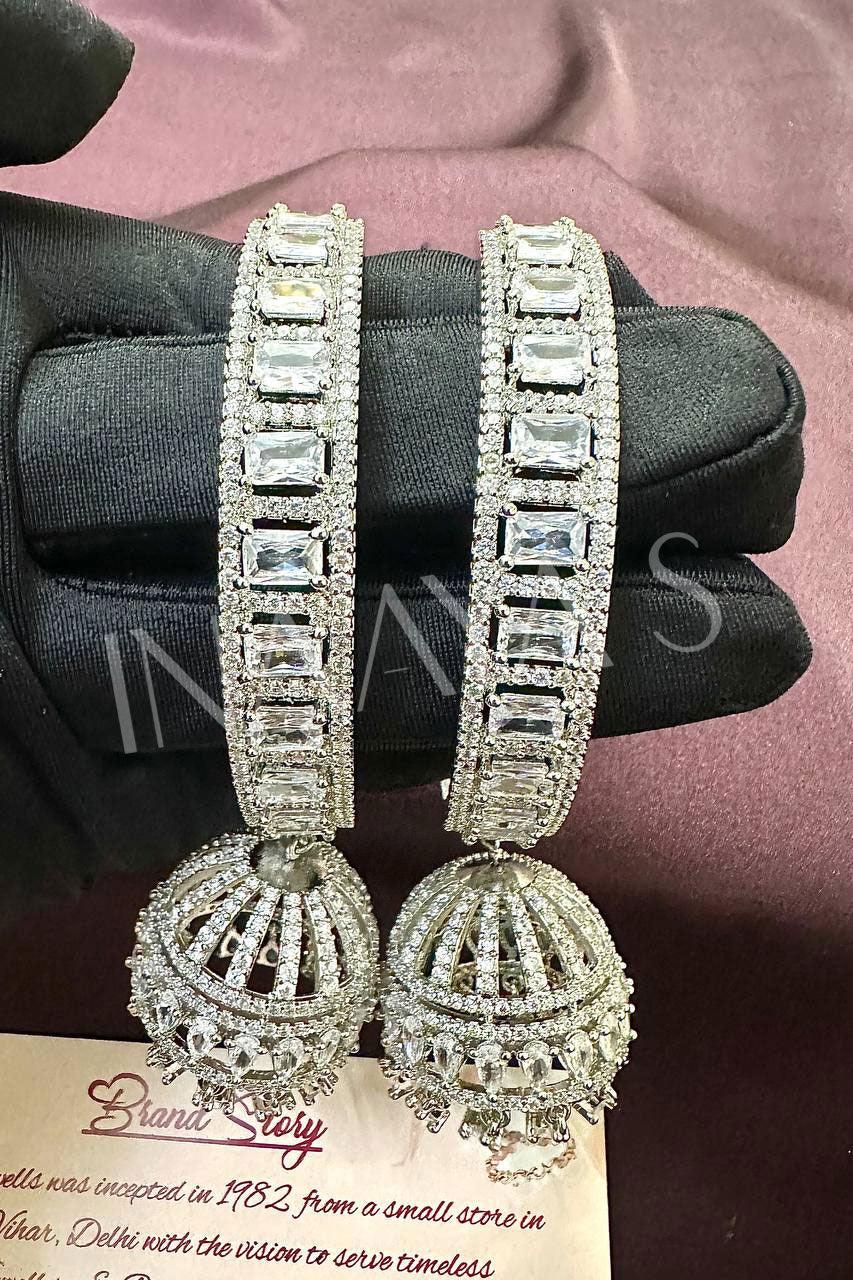 Golden Premium AD Stone Jhumki Drop Bangle Set, Indian Asian Bangles Churiya Bangle Set Kangan Bangles Pack Of 2.
