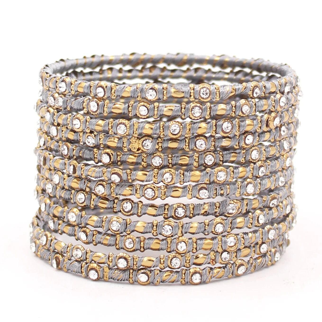 Indian Bangles / 12 Thread Stones Bangle Set / Indian Jewelry / Bridal Bangles / Stone Bangles / Bollywood Jewelry / Chudiyan for Women