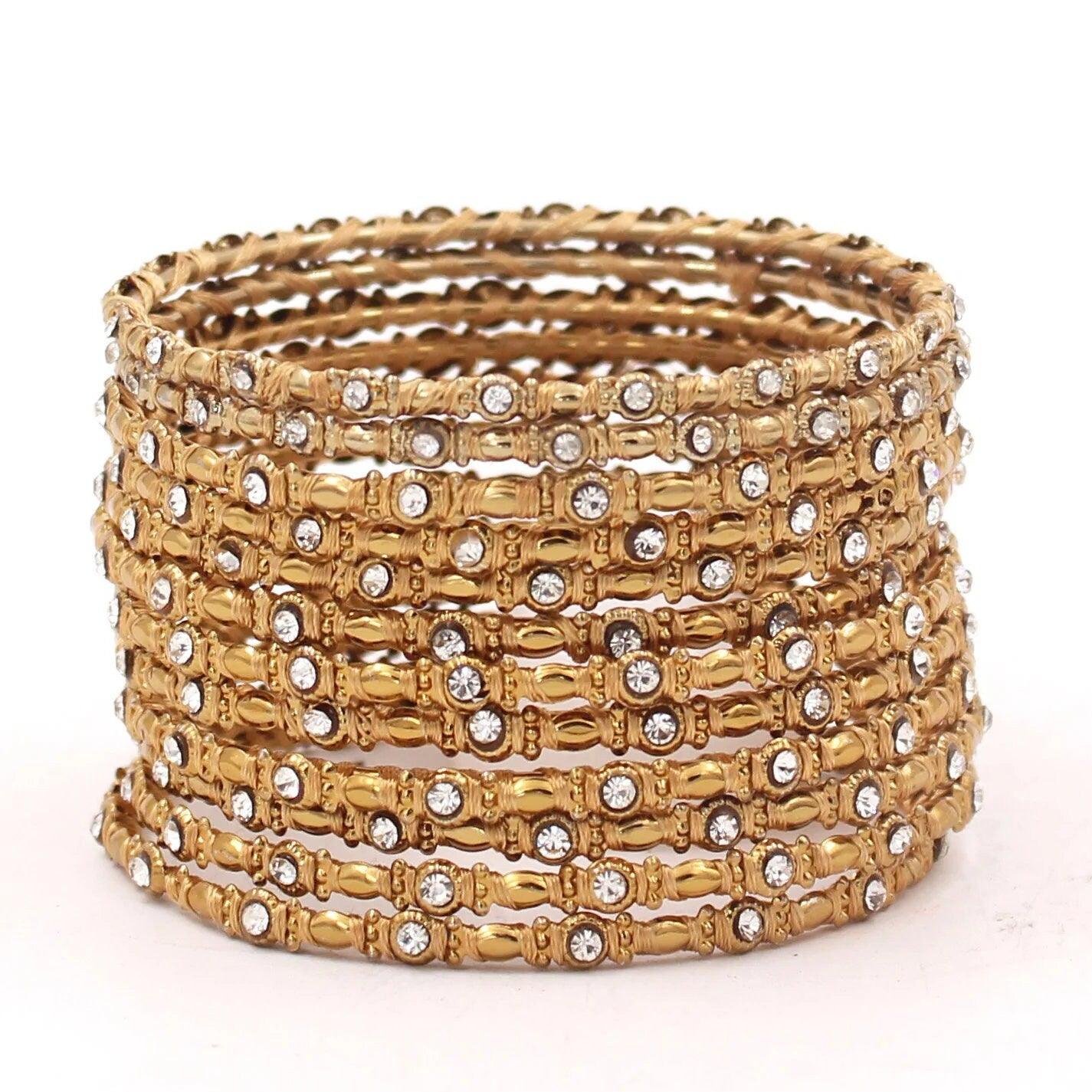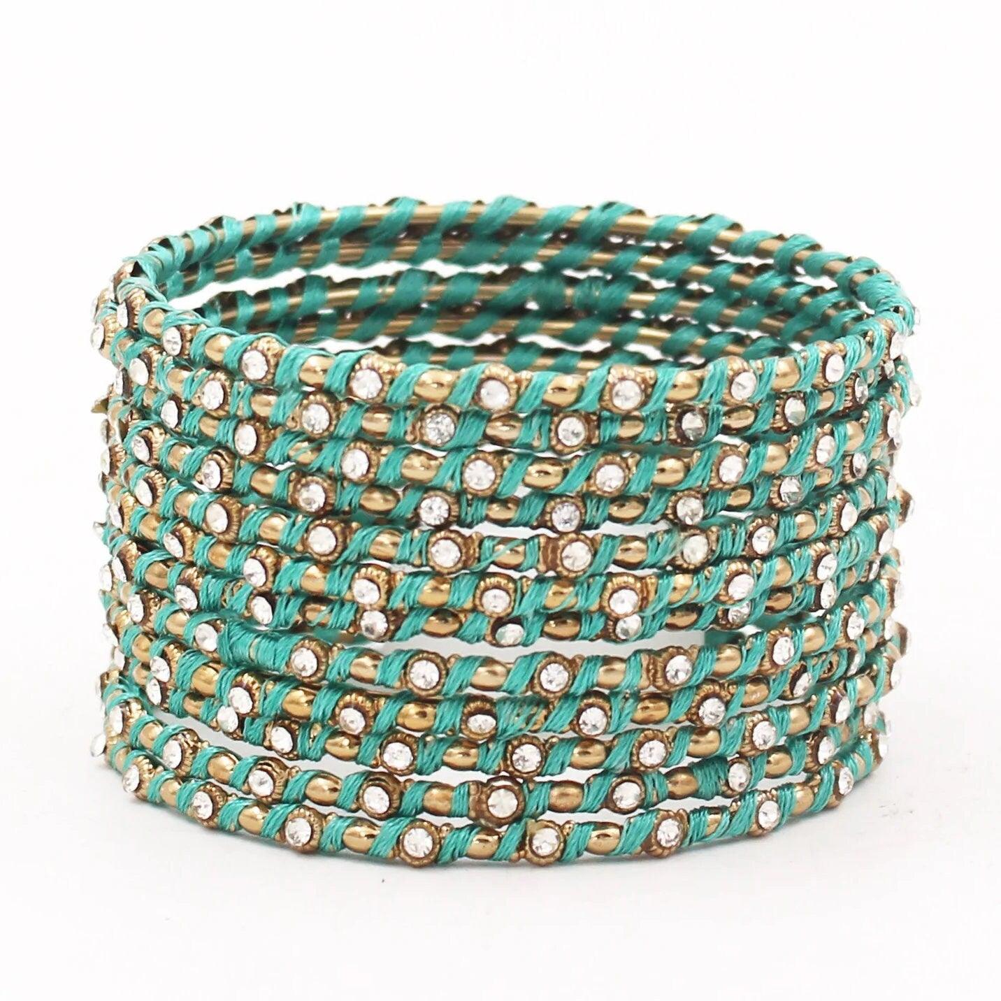 Indian Bangles, 12 Thread Stones Bangle Set
