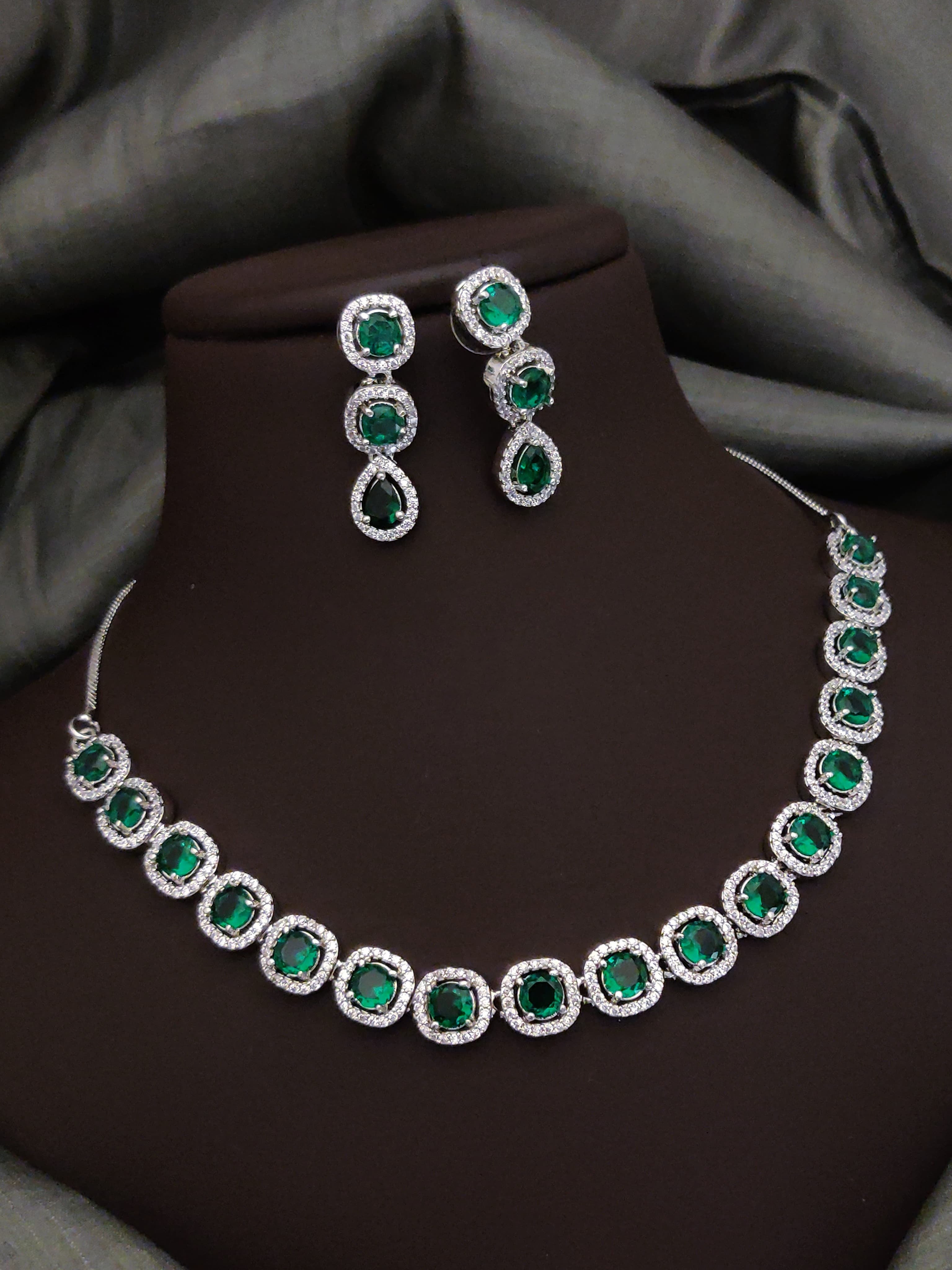 Bridal Silver Plated CZ Choker Earrings Set | Kundan Jewelry | AD Jewelry | Pakistani Choker Set | Traditional Jewelry