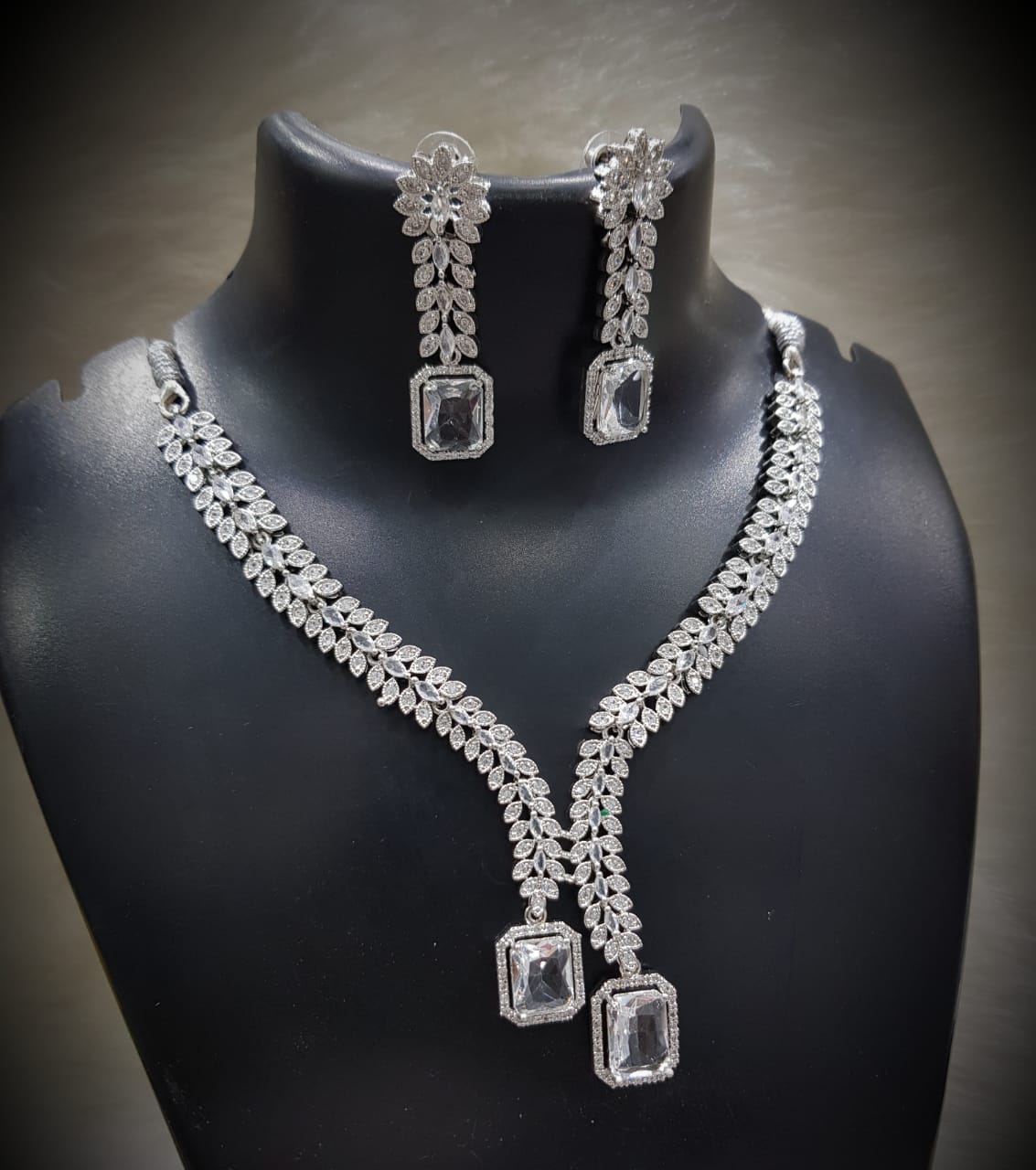 Whether it's a wedding, festival, or special occasion, this Flower Design Silver Finish CZ Choker Earrings Set is designed to make you shine. The intricate craftsmanship and the brilliance of AD Kundan work make this set a true treasure in your jewelry collection. Embrace the beauty of Indian tradition with this one-of-a-kind AD Kundan Choker Indian Jewelry set.