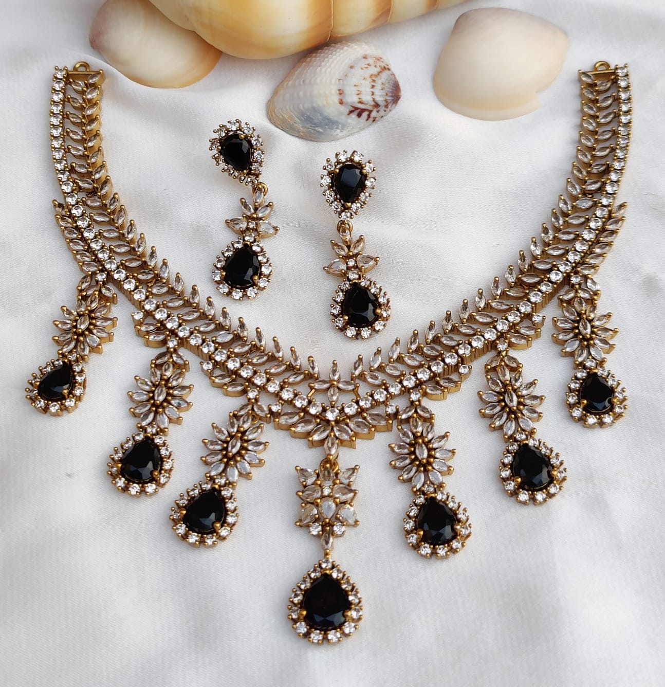 Radiate elegance on your big day with this stunning Gold Toned Bridal AD Necklace Earrings Set For Wedding. Featuring a rich gold tone and intricately set American Diamonds, this set is designed to add royal charm to your bridal attire. The Gold Toned Bridal AD Necklace Earrings Set For Wedding blends traditional beauty with modern glamour, making it perfect for brides who want to make a statement. Complete your wedding look with the luxurious sparkle and timeless appeal of this Gold Toned Bridal AD Necklace Earrings Set For Wedding.