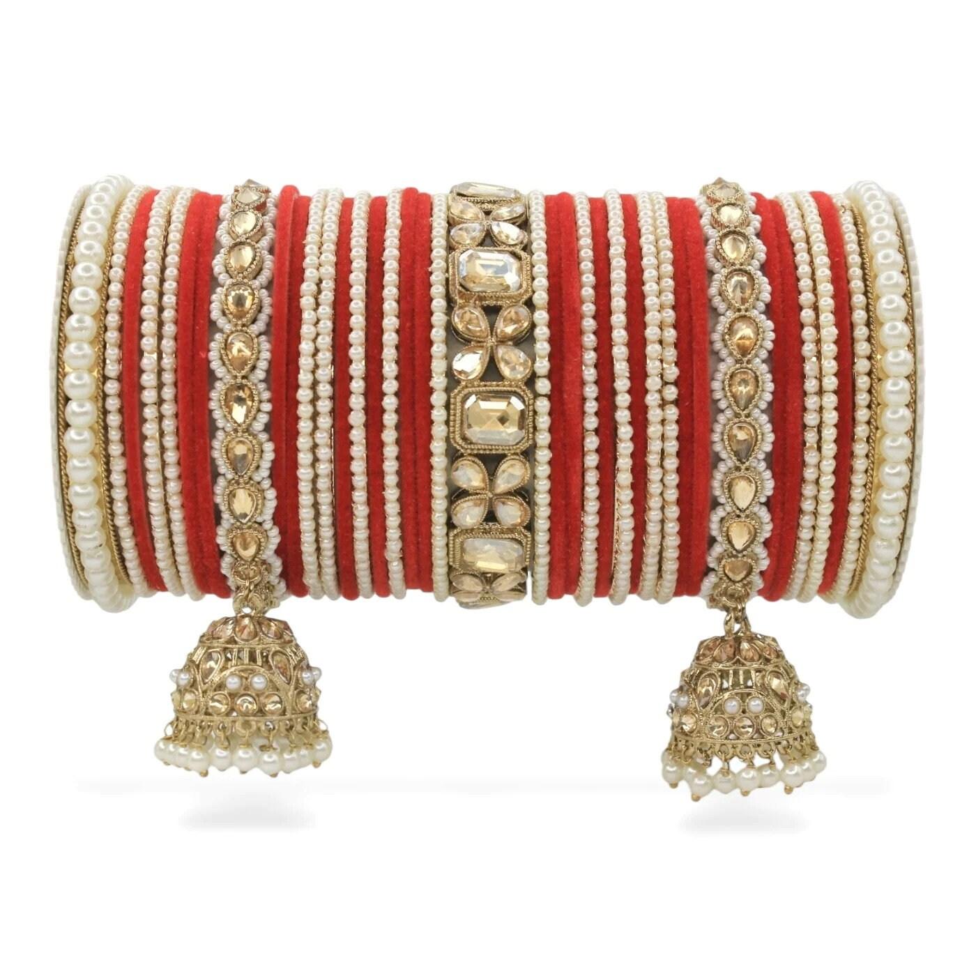 This design comprises a beautiful Pearl Bracelet center and Jhumki Borders.
