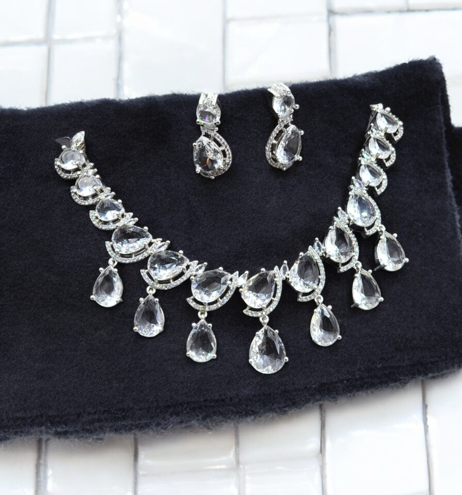 Indian Cubic Zirconia Bridal Jewellery Set, AD Necklace Earrings, Cz Earring, AD Necklace, Wedding Jewelry CZ, CZ Necklace