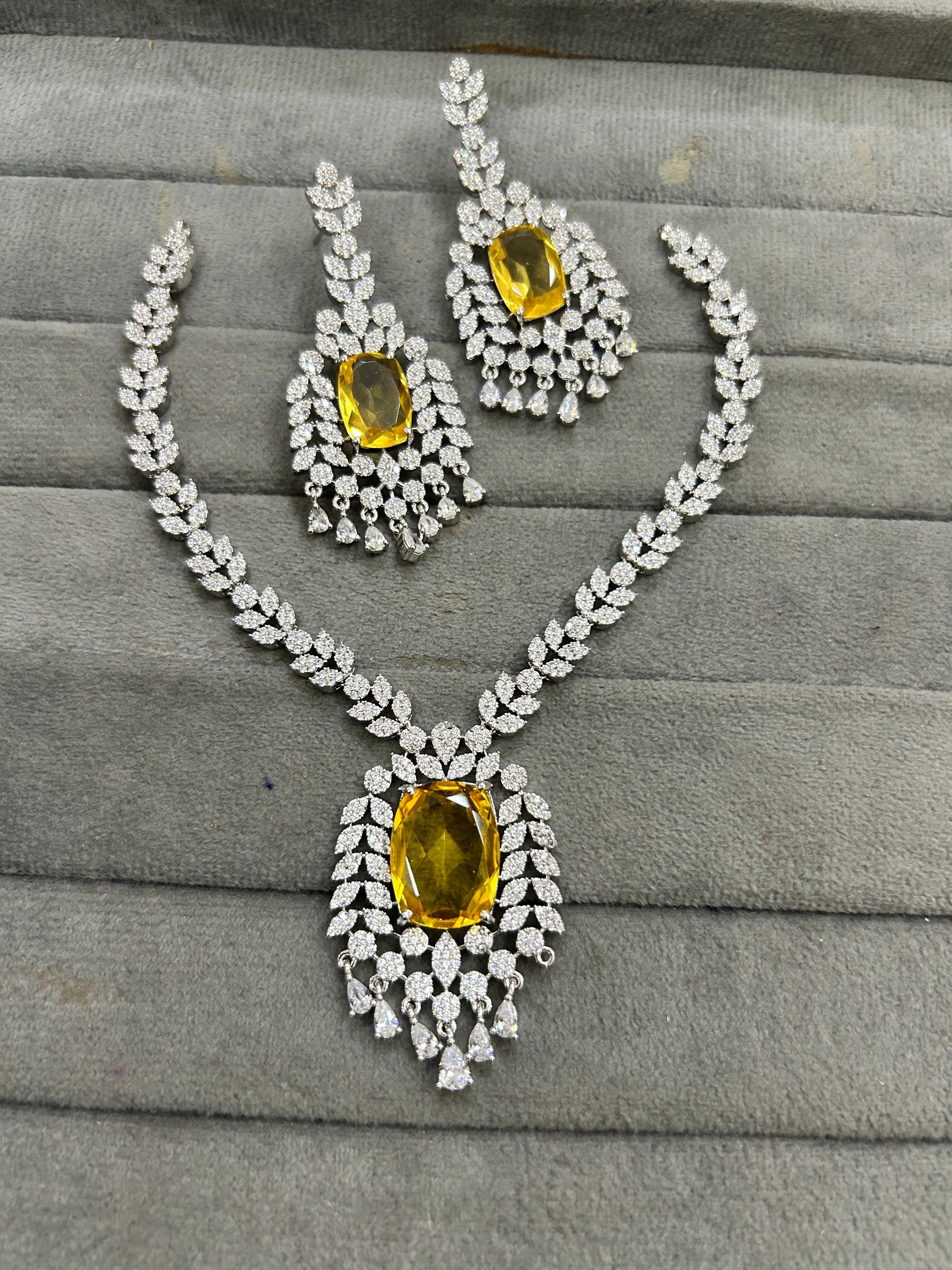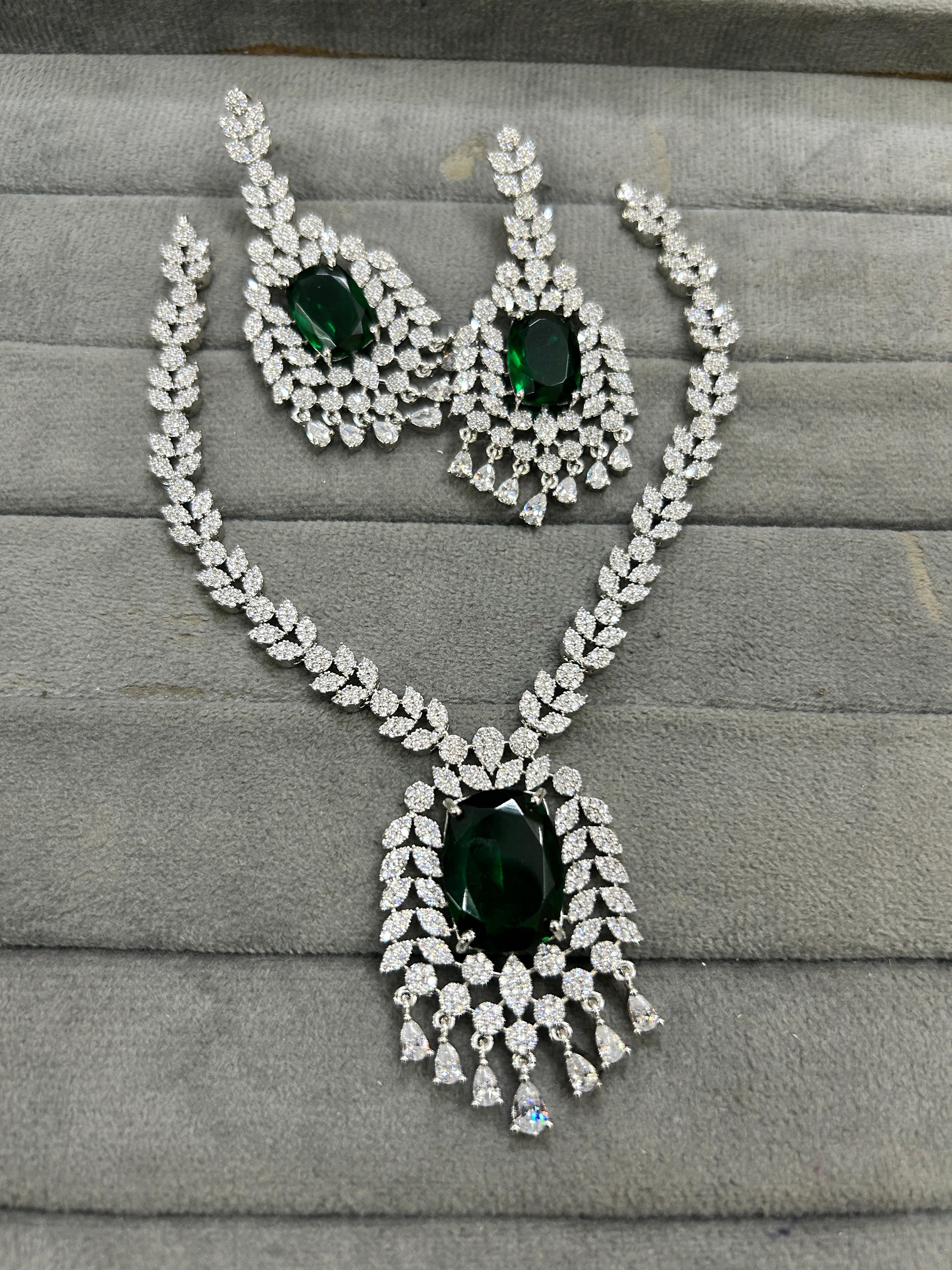 Indian Ethnic Silver Plated AD CZ Floral Necklace Earring Set For Wedding