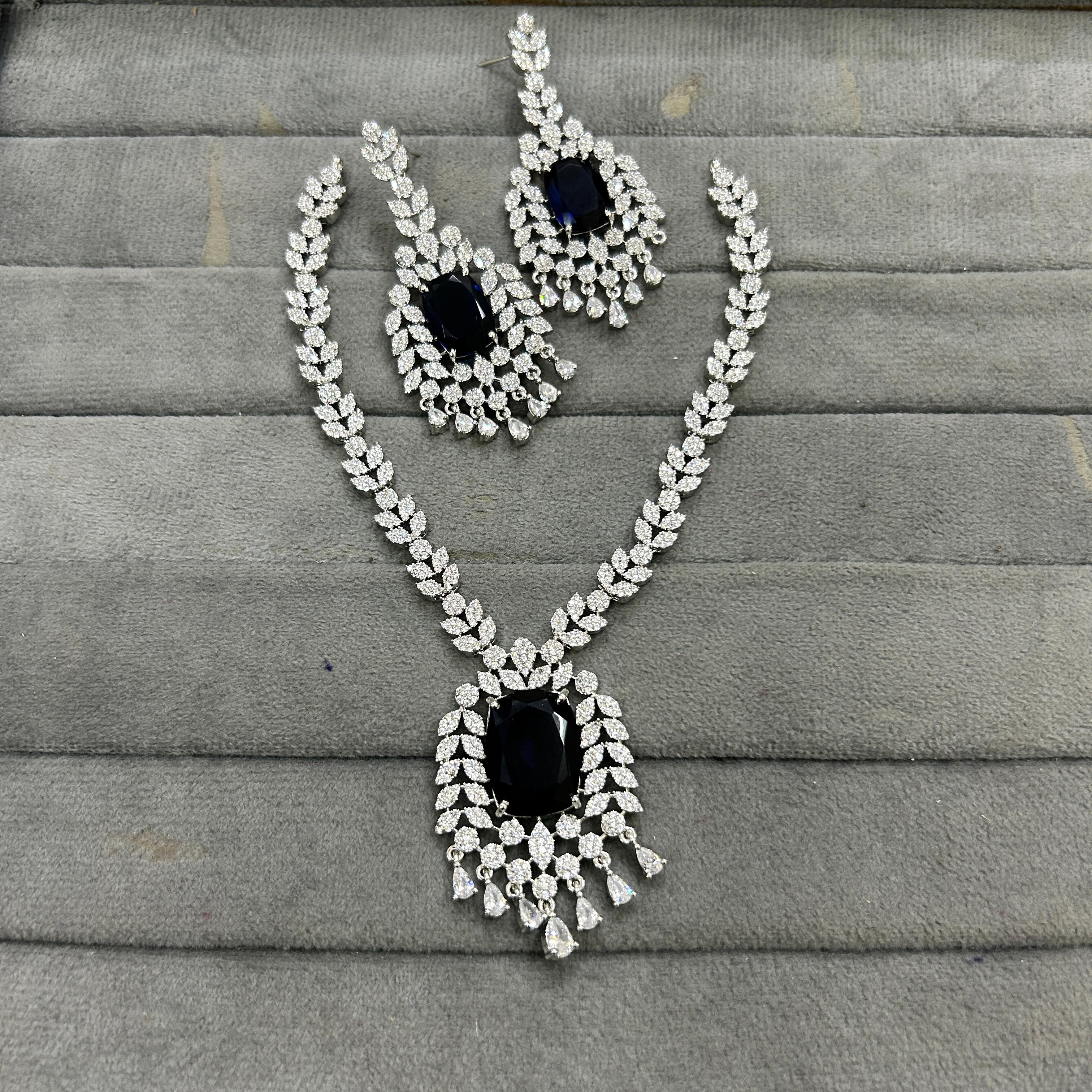 Make a graceful impression with this Indian Ethnic Silver Plated AD CZ Floral Necklace Earring Set For Wedding, designed to complement traditional and bridal attire with elegance. Featuring intricate floral motifs and sparkling AD CZ stones, this Indian Ethnic Silver Plated AD CZ Floral Necklace Earring Set For Wedding captures the charm of ethnic Indian jewelry. Ideal for brides and festive occasions, this Indian Ethnic Silver Plated AD CZ Floral Necklace Earring Set For Wedding adds a luxurious silver-plated finish to your celebration style.