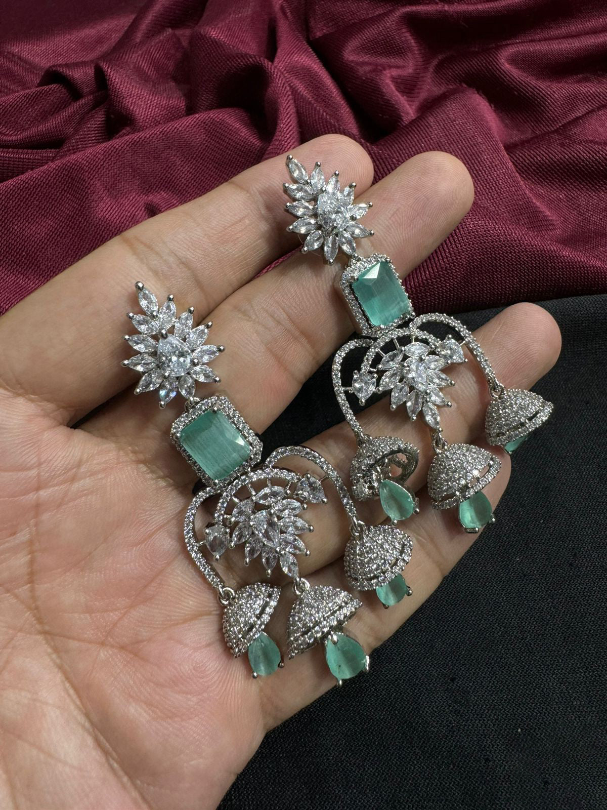 Bell Shaped Jhumka Design American Diamond Earrings Floral Motifs And Versatile For Various Occasions Bridal Party Wear