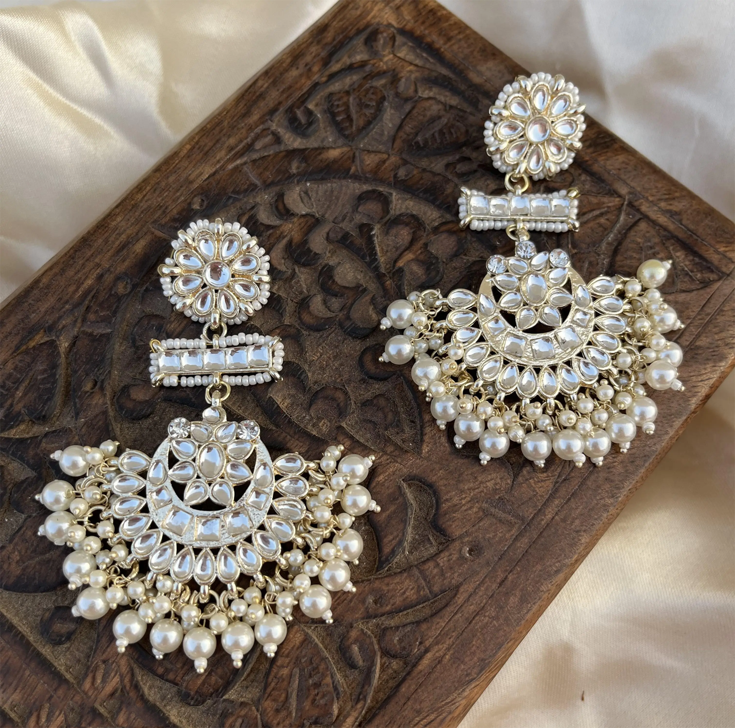 Gorgeous kundan, pearls, matte gold finish earrings.