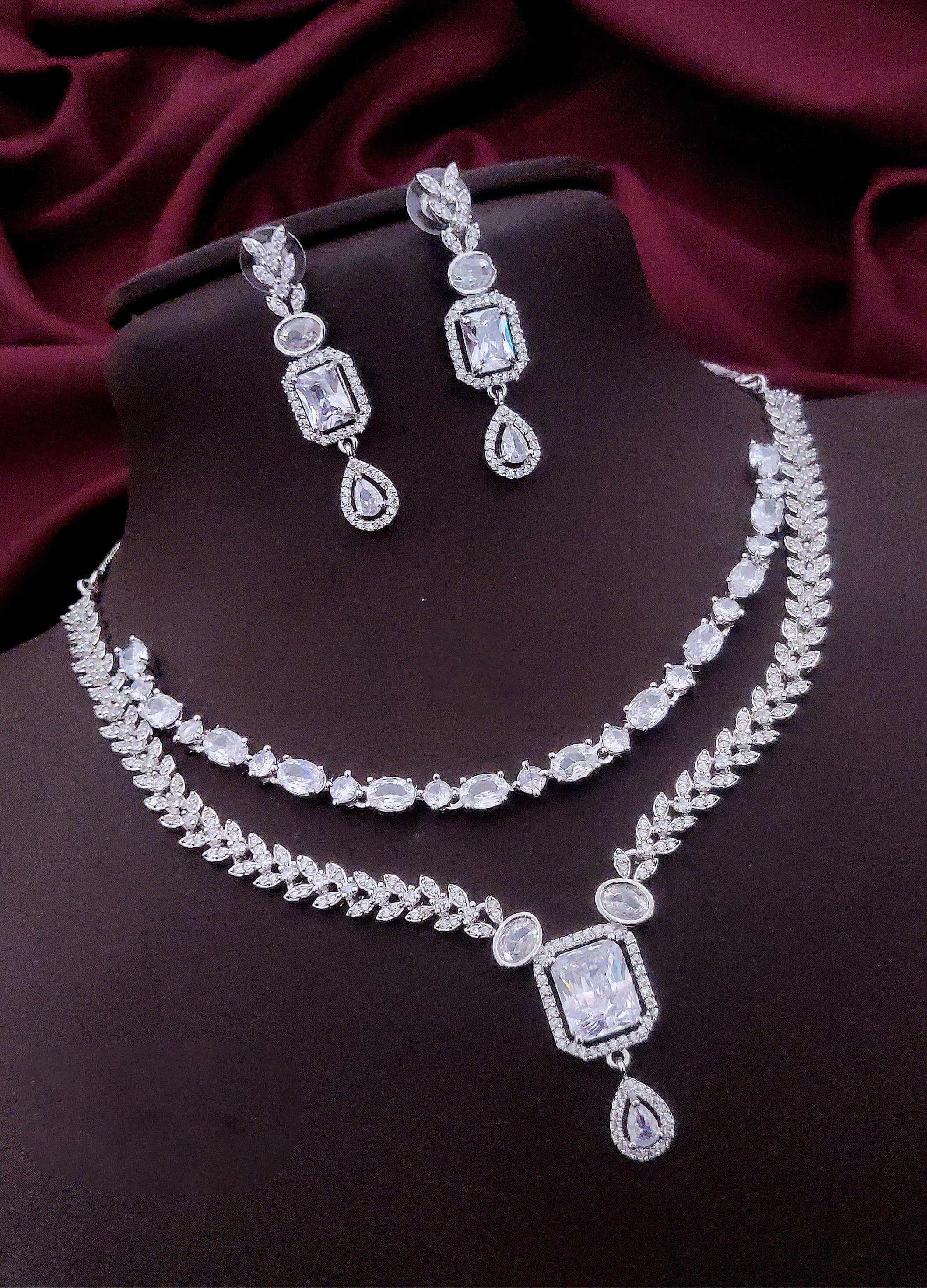 This Polki Necklace features intricate craftsmanship with layered CZ stones, offering a regal touch to any outfit. Ideal for weddings, festivals, and grand occasions, this Layered CZ Indian Wedding Choker Earrings Set pairs beautifully with ethnic ensembles. The dazzling Kundan Jewelry work reflects the rich heritage of Indian Jewelry, making it a statement piece for brides and fashion enthusiasts alike.