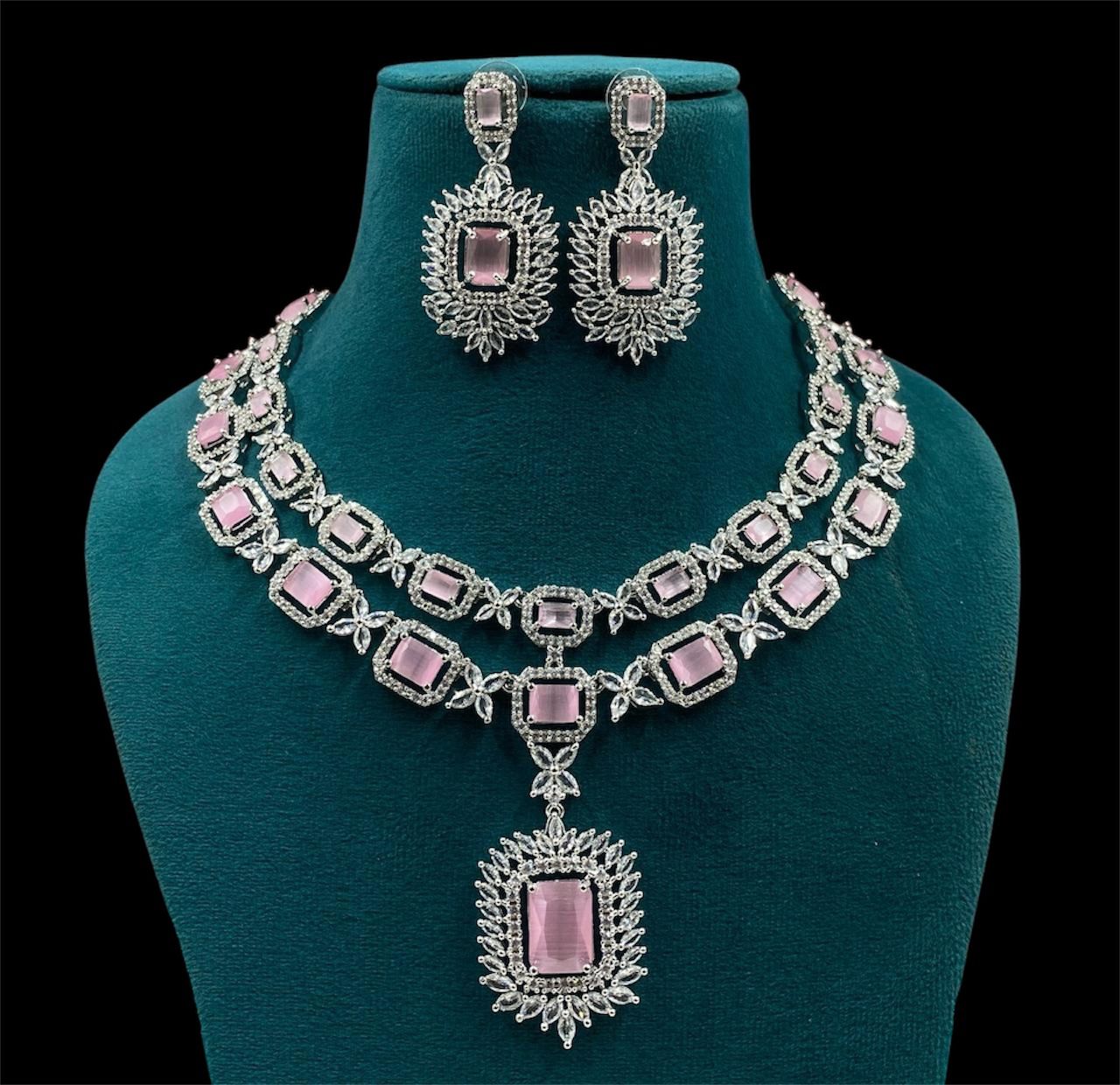 Pakistani Double Layer Floral Design Polki Necklace Set, Pakistani Traditional Necklace Set, Jaipuri Jewelry Set, Bridal Necklace Set