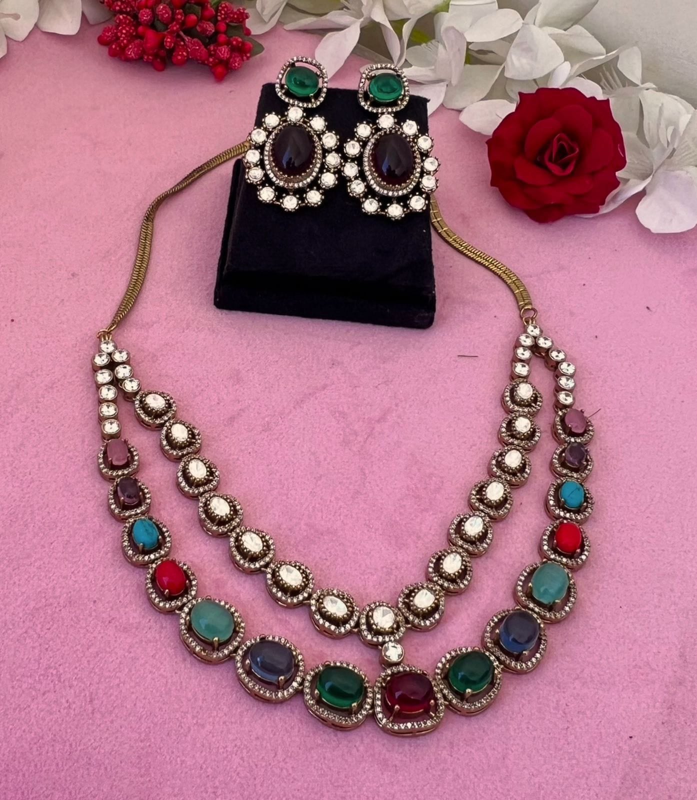 Pakistani Royal Layered Polki Work Necklace Earrings For Wedding