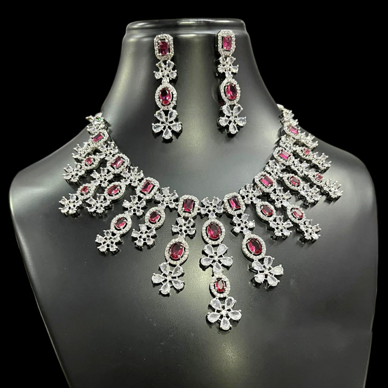 Add a touch of timeless elegance to your traditional look with this Punjabi AD Floral Silver Toned Choker Earrings Set. Designed with intricate craftsmanship, this Punjabi AD Floral Silver Toned Choker Earrings Set features a CZ flower design choker set that exudes grace and charm. Perfect for weddings, festivals, and special occasions, the Punjabi AD Floral Silver Toned Choker Earrings Set offers a stunning blend of classic Punjabi aesthetics and modern sparkle.