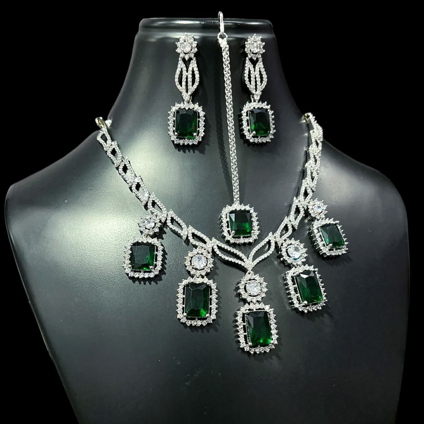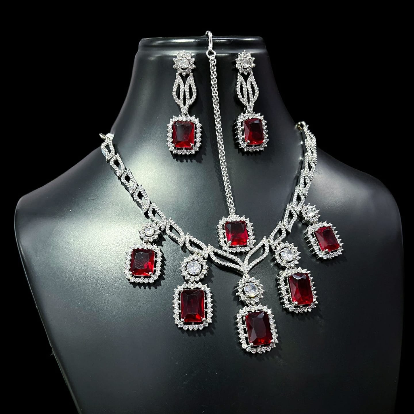 Make a dazzling statement with this beautiful Square American Diamond Stone Work Necklace Earring Mangtikka Set. Designed with intricate stone work and sparkling square American diamonds, this Square American Diamond Stone Work Necklace Earring Mangtikka Set is perfect for weddings, festivals, and special occasions. Complete your traditional look with the elegant Square American Diamond Stone Work Necklace Earring Mangtikka Set, crafted to enhance your beauty with timeless charm and brilliance.