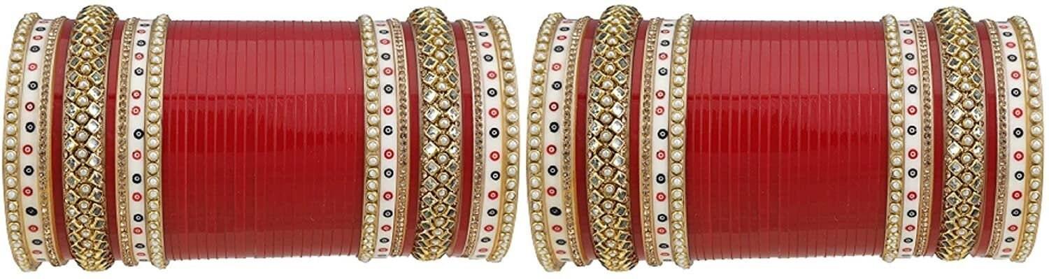 Indian Bridal Wedding Wear Chura Set, Traditional With Stone Kada, Chura, Chooda