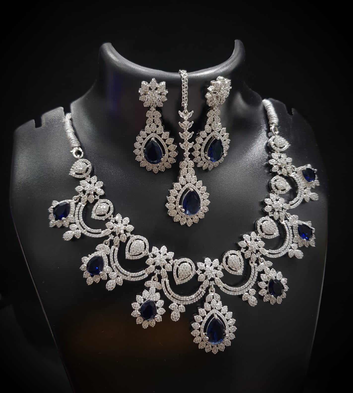 Layered AD Necklace With Matching Earrings Elegant And Formal Style Suitable For Special Occasions. American DIAMOND Choker NECKLACE Set Earring Combo Cz Stone Made Designer Indian Bridal Necklace Dangle Earring Fashion Jewellery
