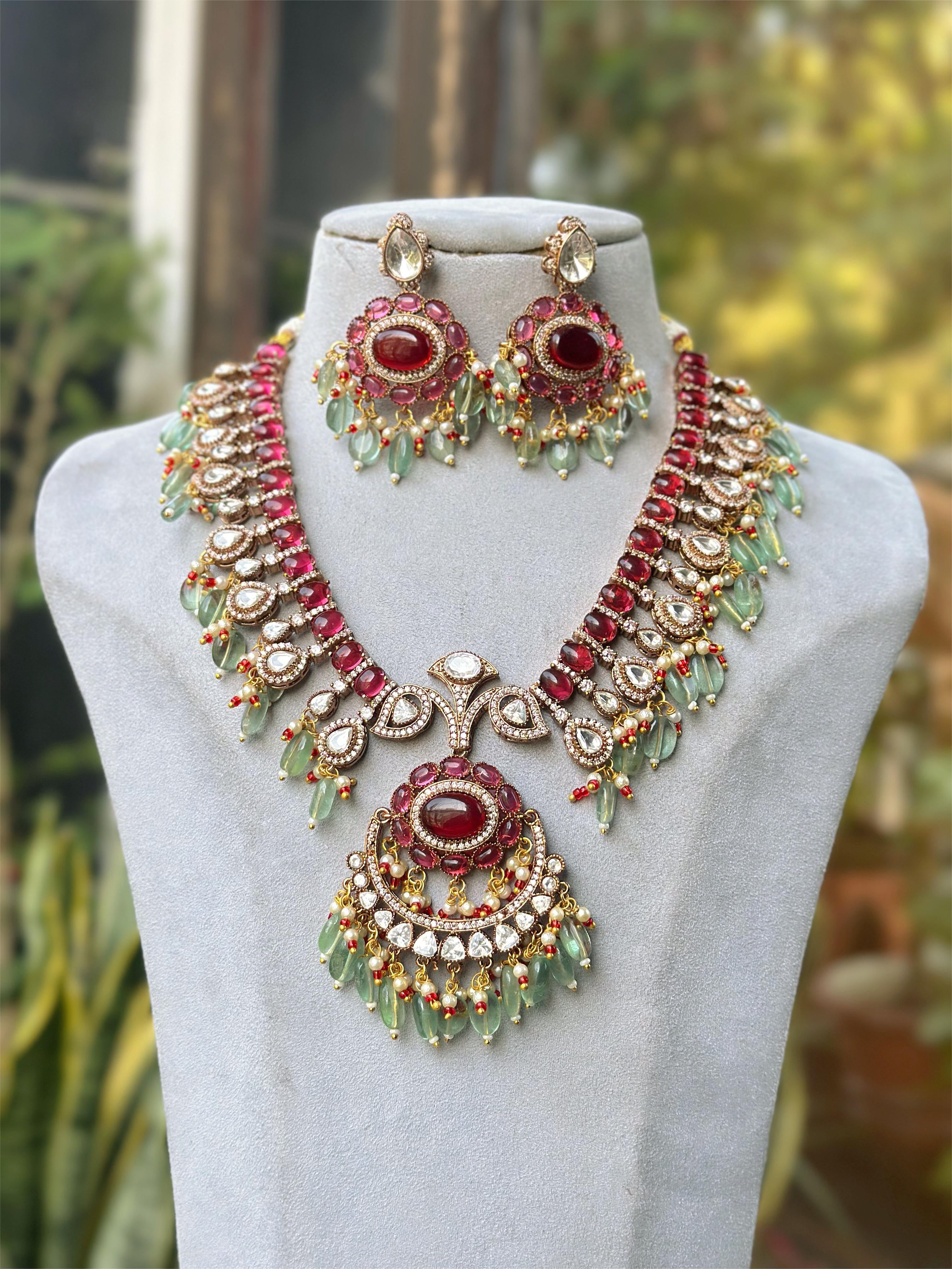 Indian Meenakari Designed Polki Necklace Earrings Set, Pakistani Traditional Polki Necklace Set, Jaipuri Meenakari Jewelry Set, Bridal Polki Necklace Set