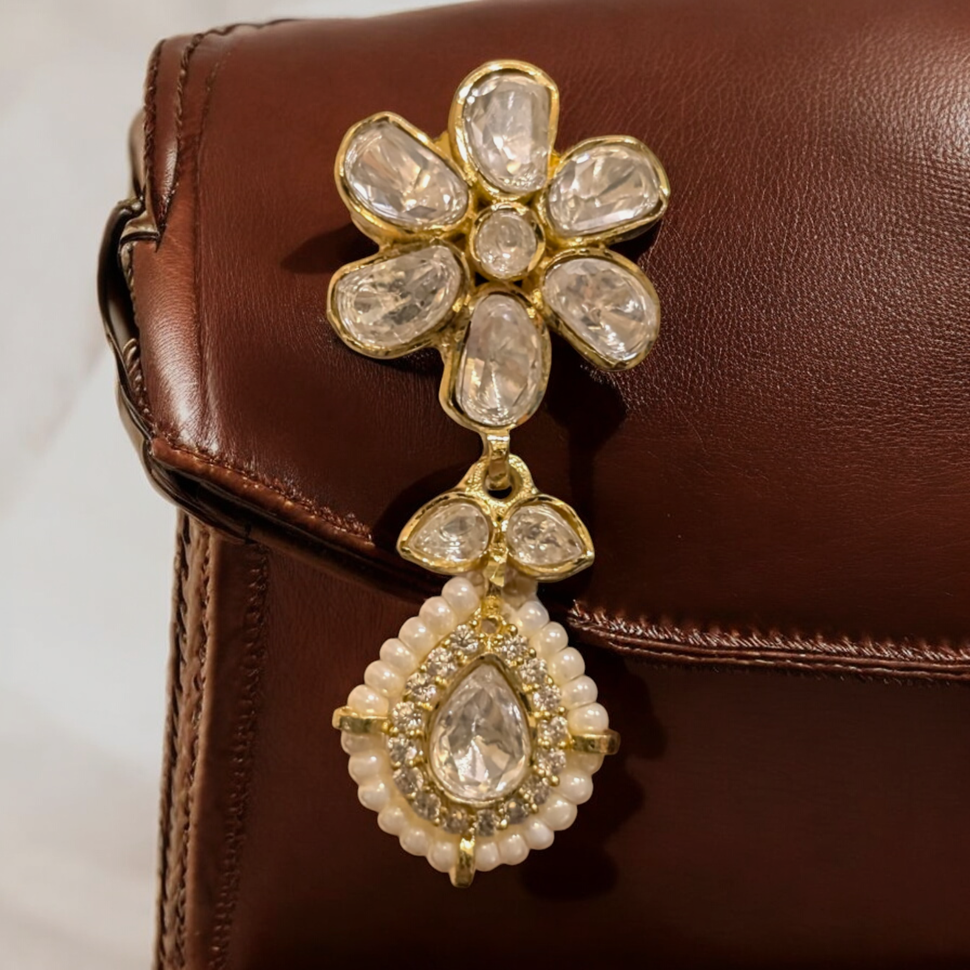 Bollywood Floral AD Necklace Earrings Set, CZ Floral Jewelry Set, AD Celeb Floral Necklace Set, AD Necklace Set, Necklace Set, AD Earrings Set