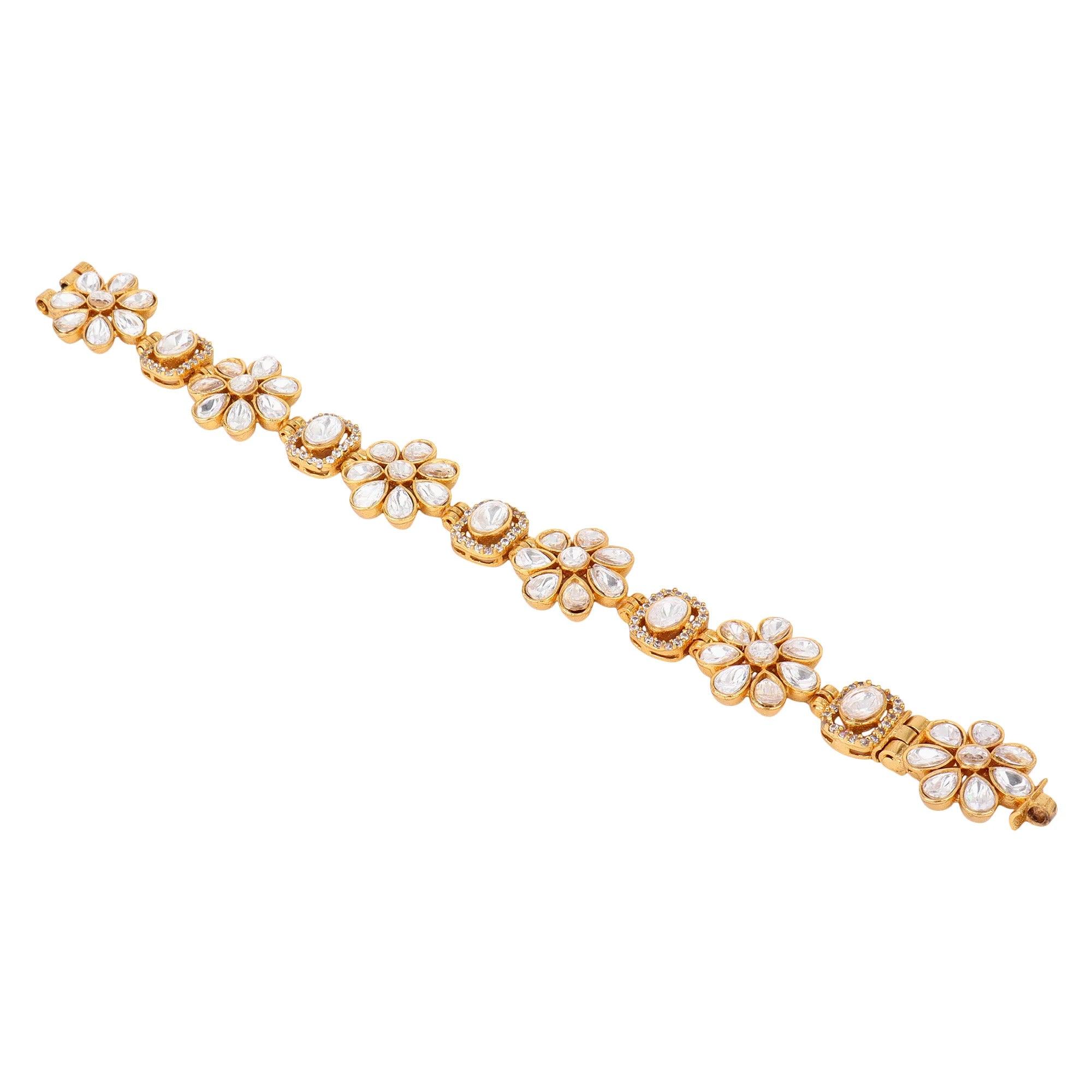 Flower Shape Kundan Bracelet, Stones & White Kundan Chain Bracelet, Indian traditional bracelet, Bollywood Indian Jewelry | Gifts for Her