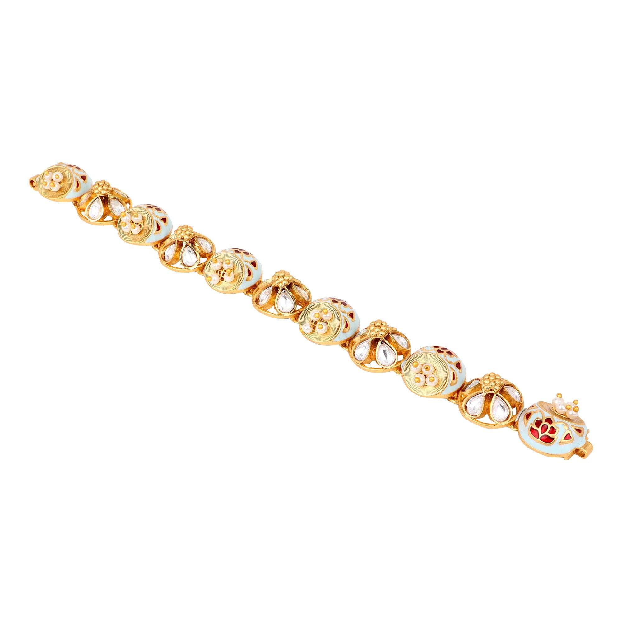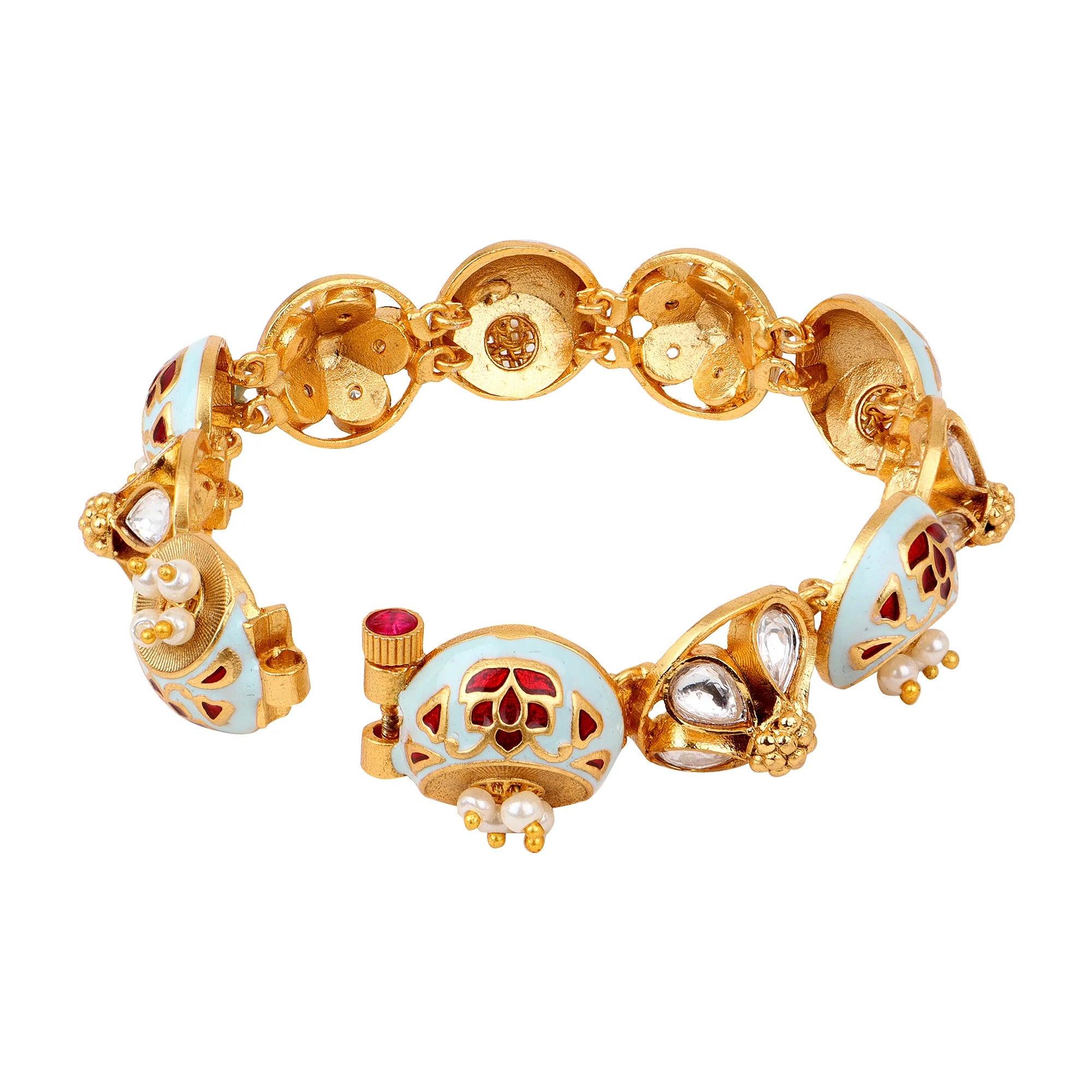 Flower Shape Meenakari Kundan Bracelet, Kundan Stone Chain Bracelet, Indian traditional bracelet, Bollywood Indian Jewelry | Gifts for Her - Libasaa