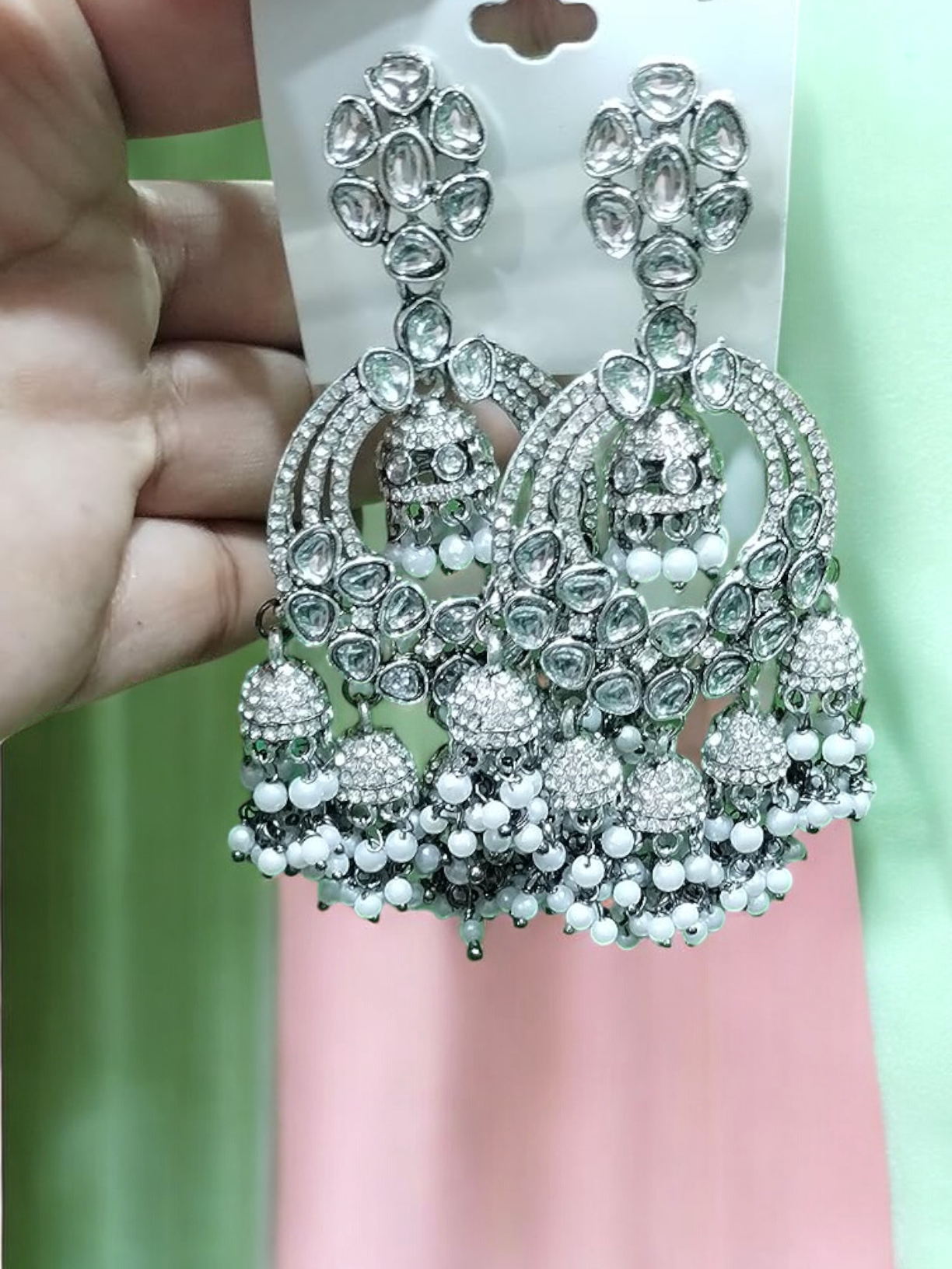 Bridal Pearl Chandbali Stone Earrings Jewellery, Pearl Bridal earrings, Kundan Earrings, Chandbali earrings, Indian Earrings, Paki Kundan