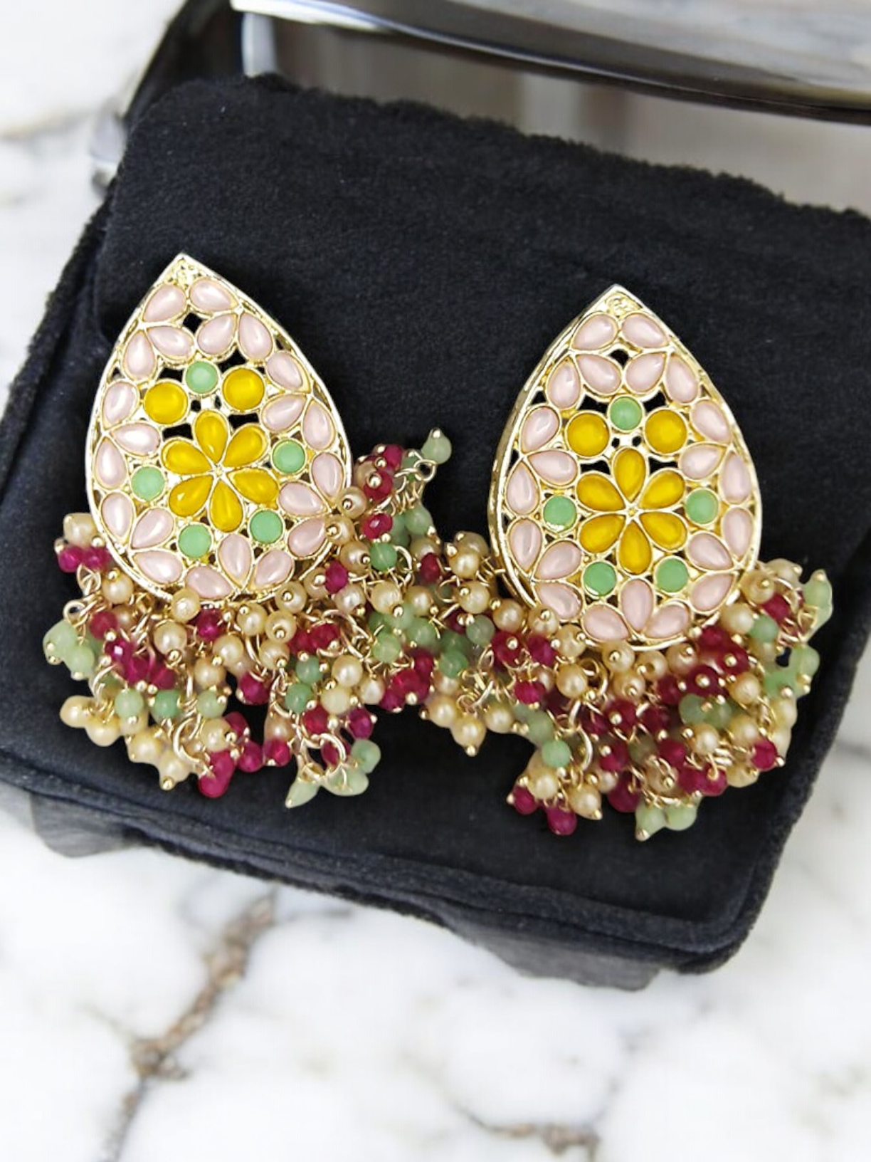 Multicolor Indian Pearl Drops Earrings Set, Bridal Drops Earring, Wedding Earrings, Pakistani Jewelry, Bridal Jewelry Set