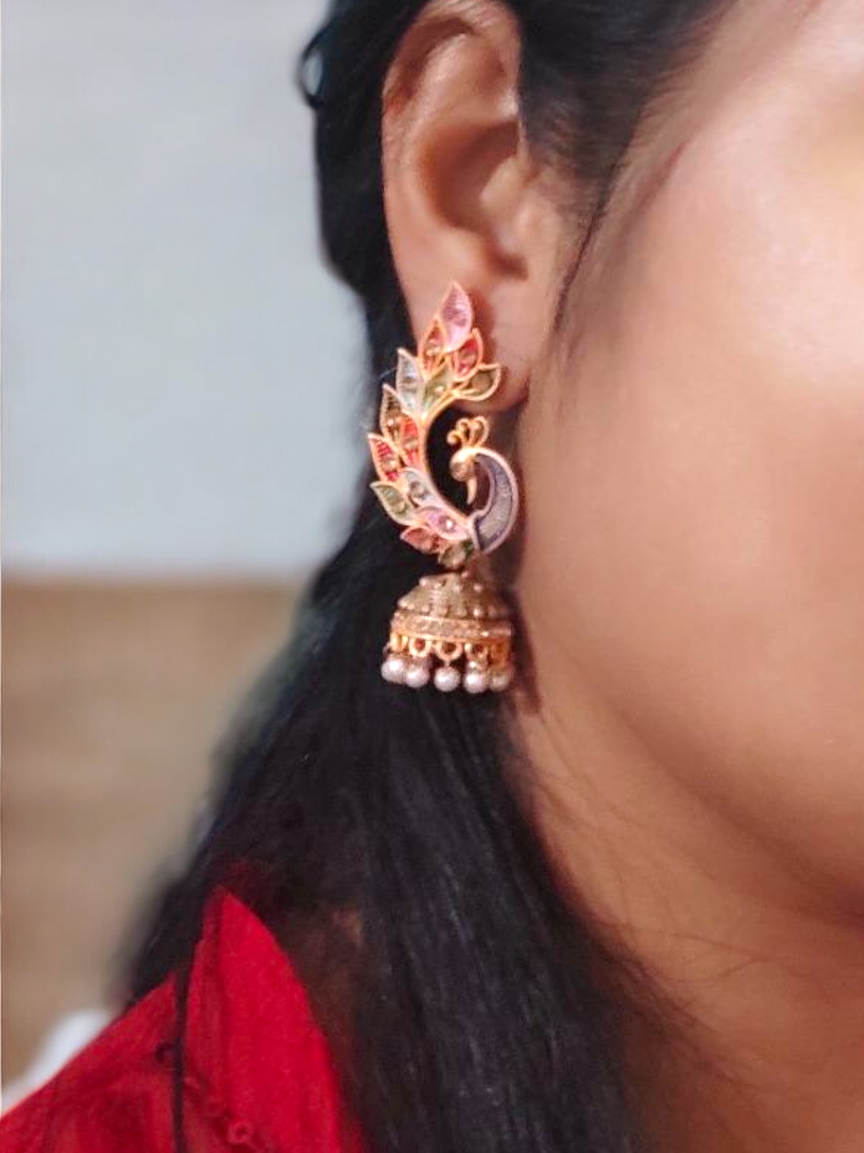 Peacock Gold Plated Kundan Earrings Set, Peacock earrings, Peacock Jewellery, Pakistani Earring Jewelry, Indian Jewelry set, Bollywood earrings, Pearl Earrings
