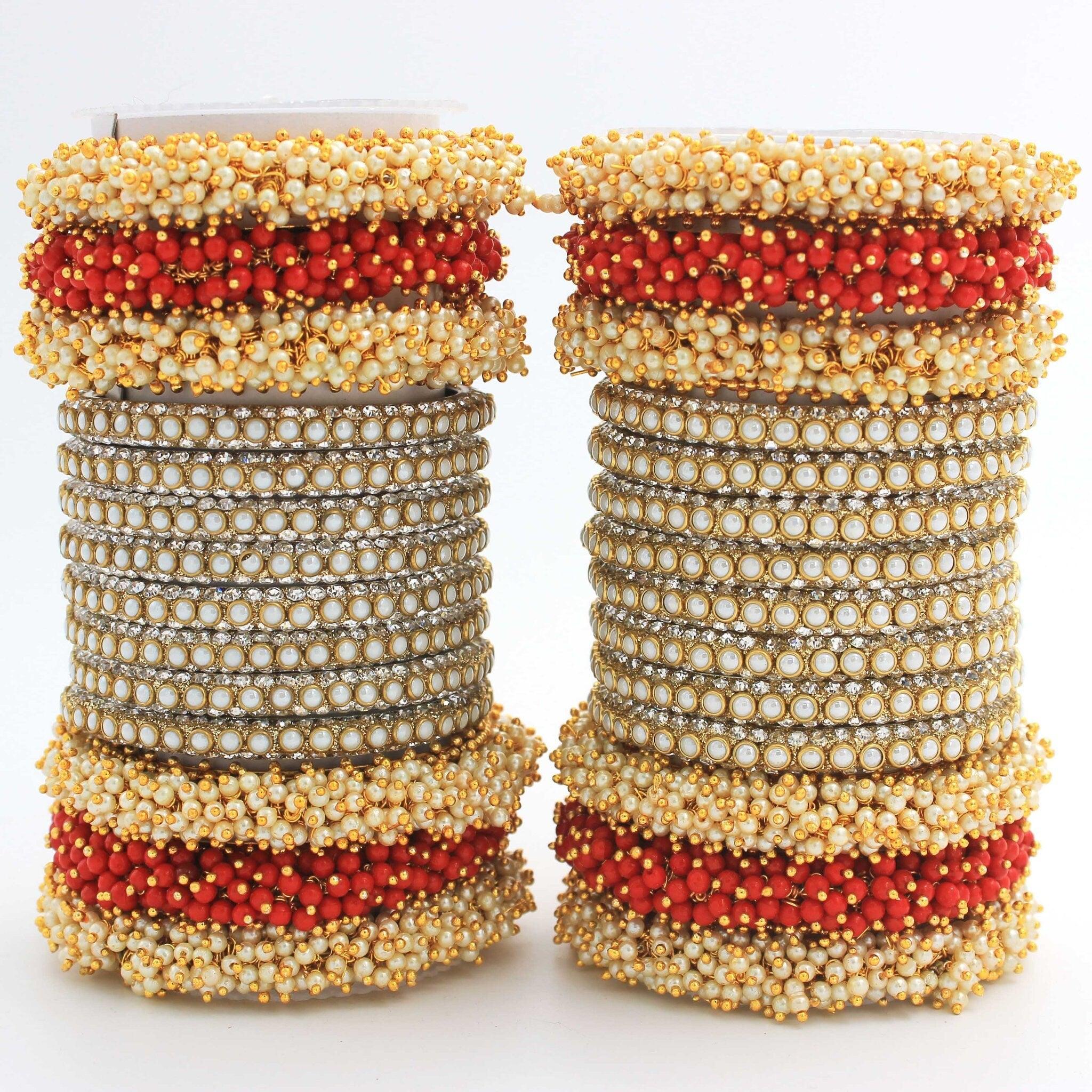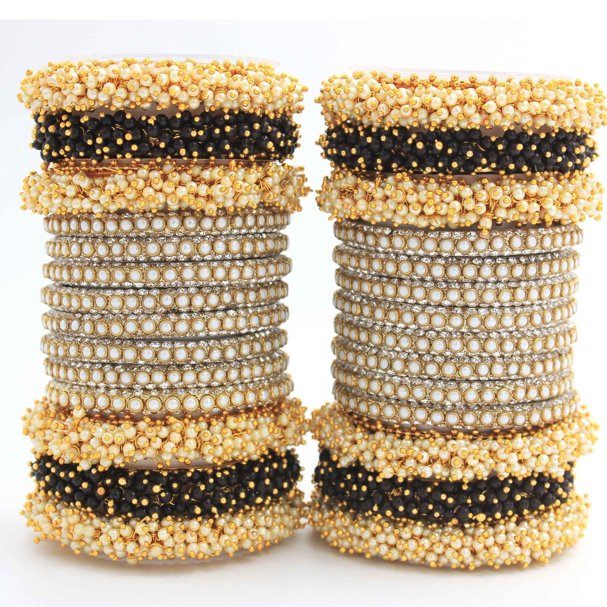 Indian bangle set , Bridal bangles, Metal bangles, Traditional wedding jewelry, Pearls and Stones Bridal Bangle Set for Women