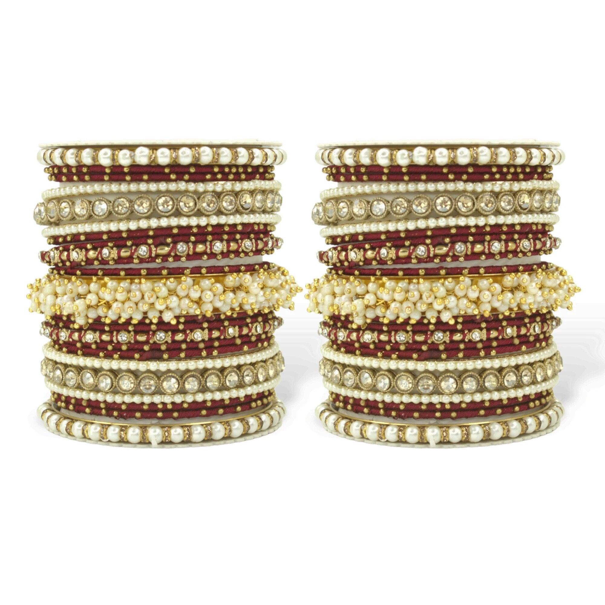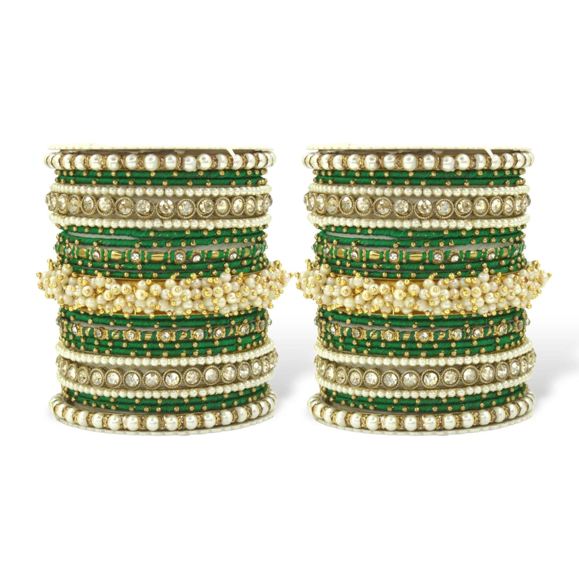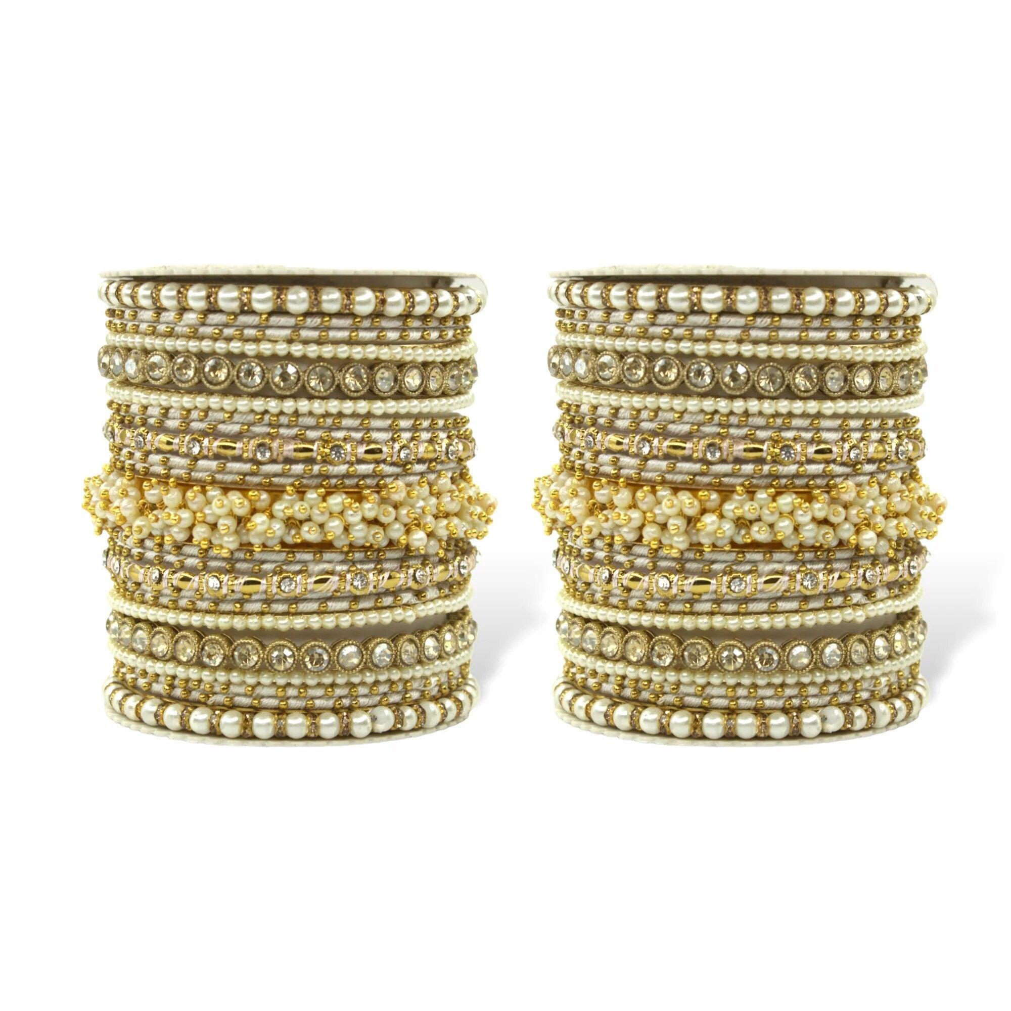 This design comprises a beautiful Pearl Bracelet and stone Kadas. They are ideal for the bride and can compliment any Indian Ethnic wear. Available in Traditional Colours