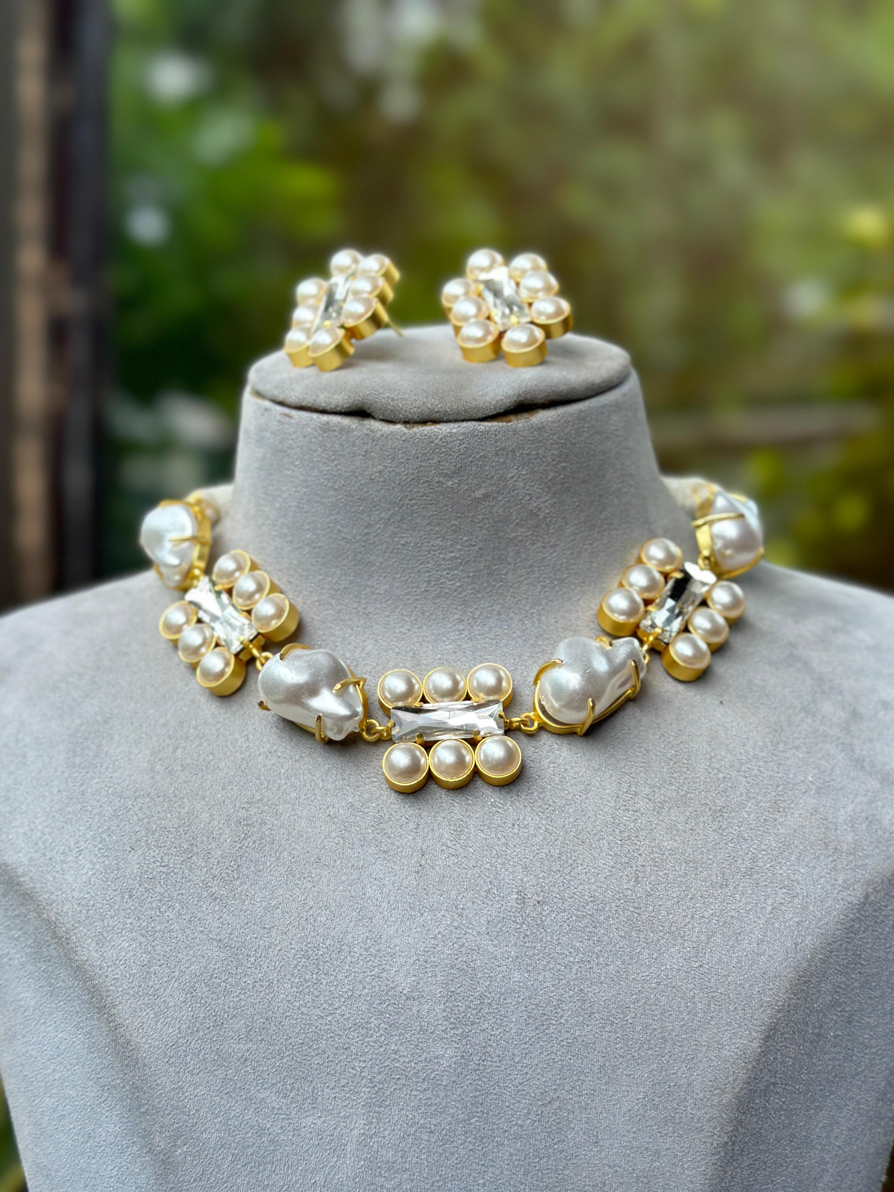 Anushka Sharma Inspired Kundan Necklace with Earrings for Weddings and Engagements. American DIAMOND Choker NECKLACE Set Earring Combo Cz Stone Made Designer Indian Bridal Necklace Dangle Earring Fashion Jewellery