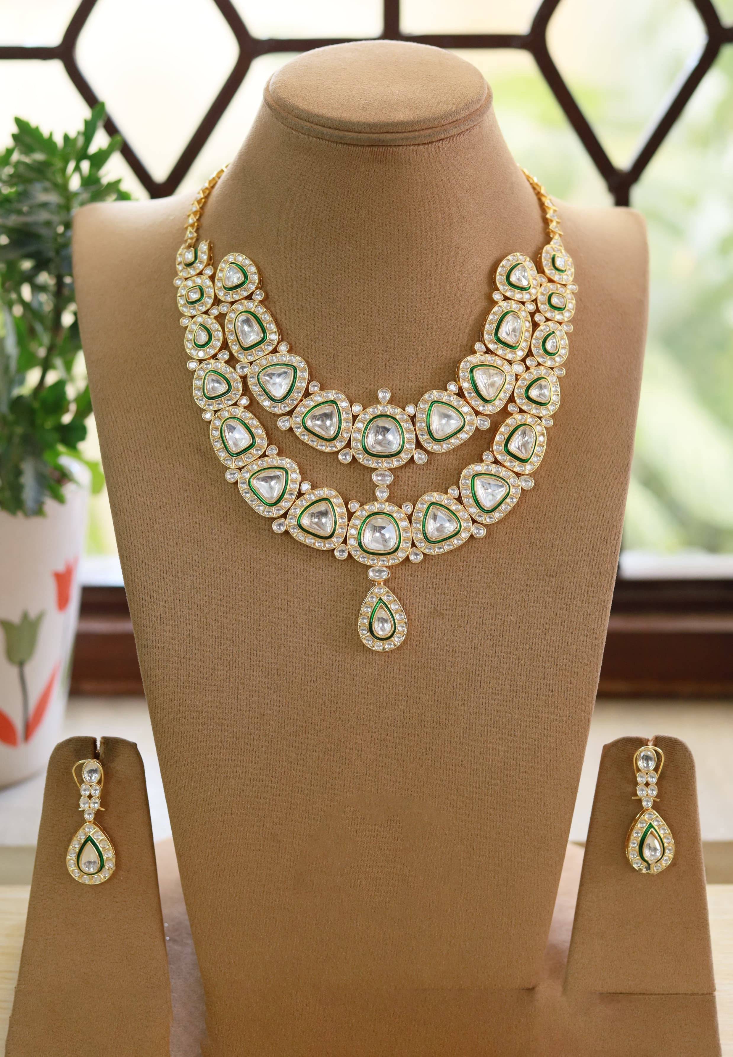 Double Layer Handcrafted Necklace Earrings Set Artistic Beauty and Traditional Excellence Combined