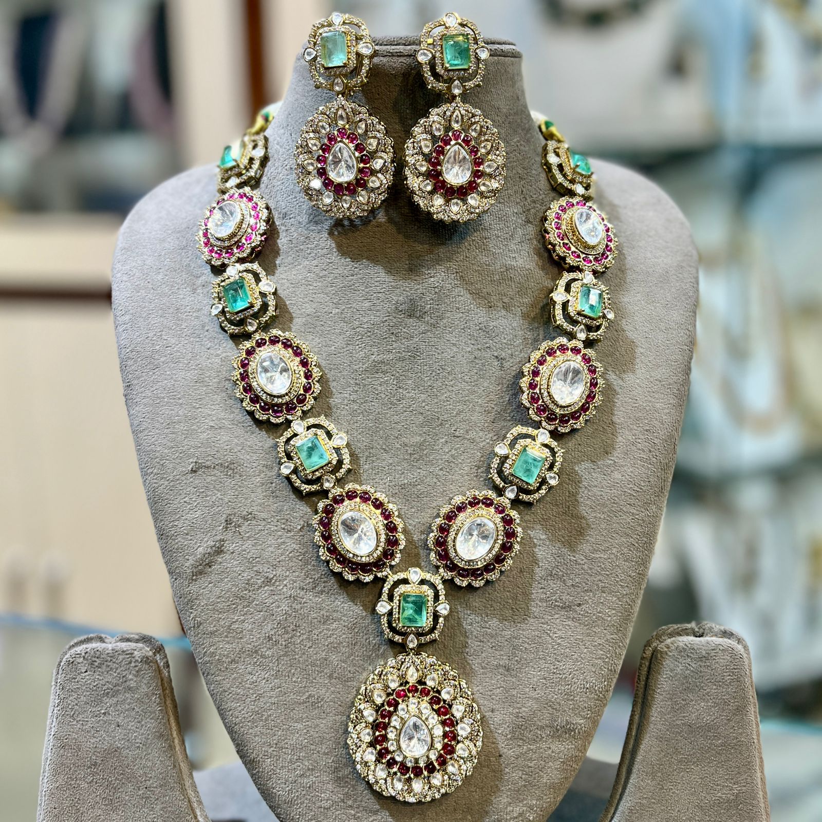 Emerald Ruby Polki Necklace Set Wedding Jewelry, Polki Earrings Set, Emerald Polki Jewellery Set, Bollywood Polki Necklace Set, Celebrity Polki Set, Indian jewellery Set