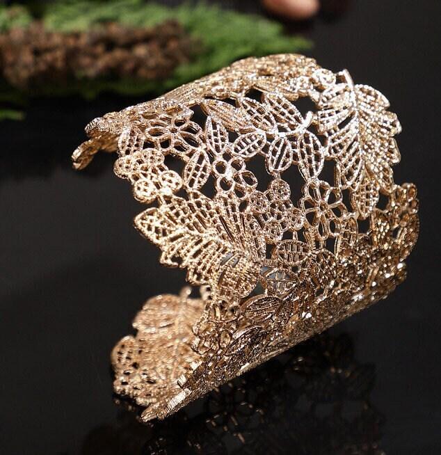 Gold Cuff Bracelet, Gold Bangle, Gold Plated Alloy Antique Cuff Bracelet, Wide Gold Bangle Arm Cuff, Gift For Her, Arm Cuff