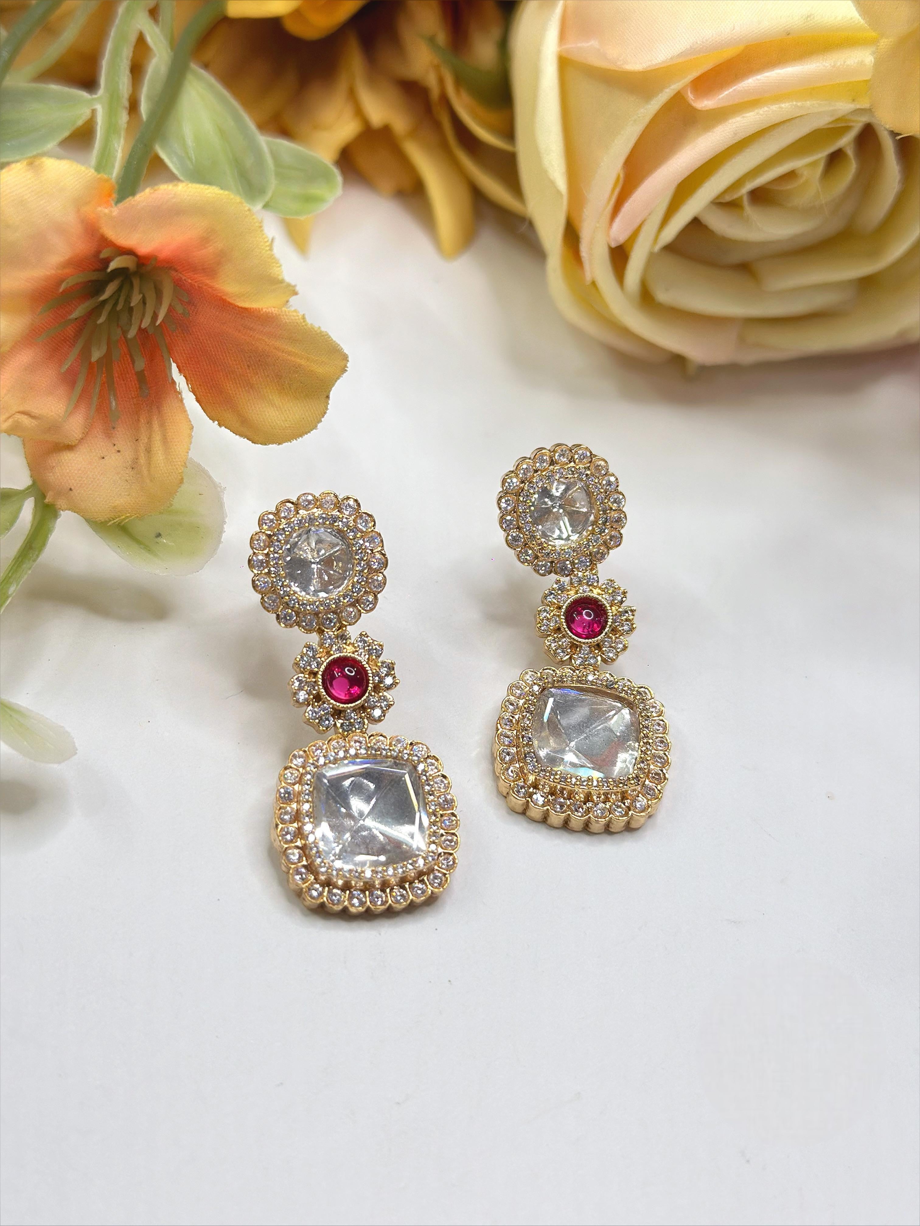 Elevate your festive and evening look with these stunning Mint Green Crystal Dangler Earrings. The earrings feature layered teardrop-shaped crystals beautifully set in a black and gold-tone base, finished with sparkling cubic accents and elegant pearl drops. The shimmering blend of mint green stones and diamond-cut detailing adds a sophisticated touch, perfect for parties, weddings, and cocktail events.