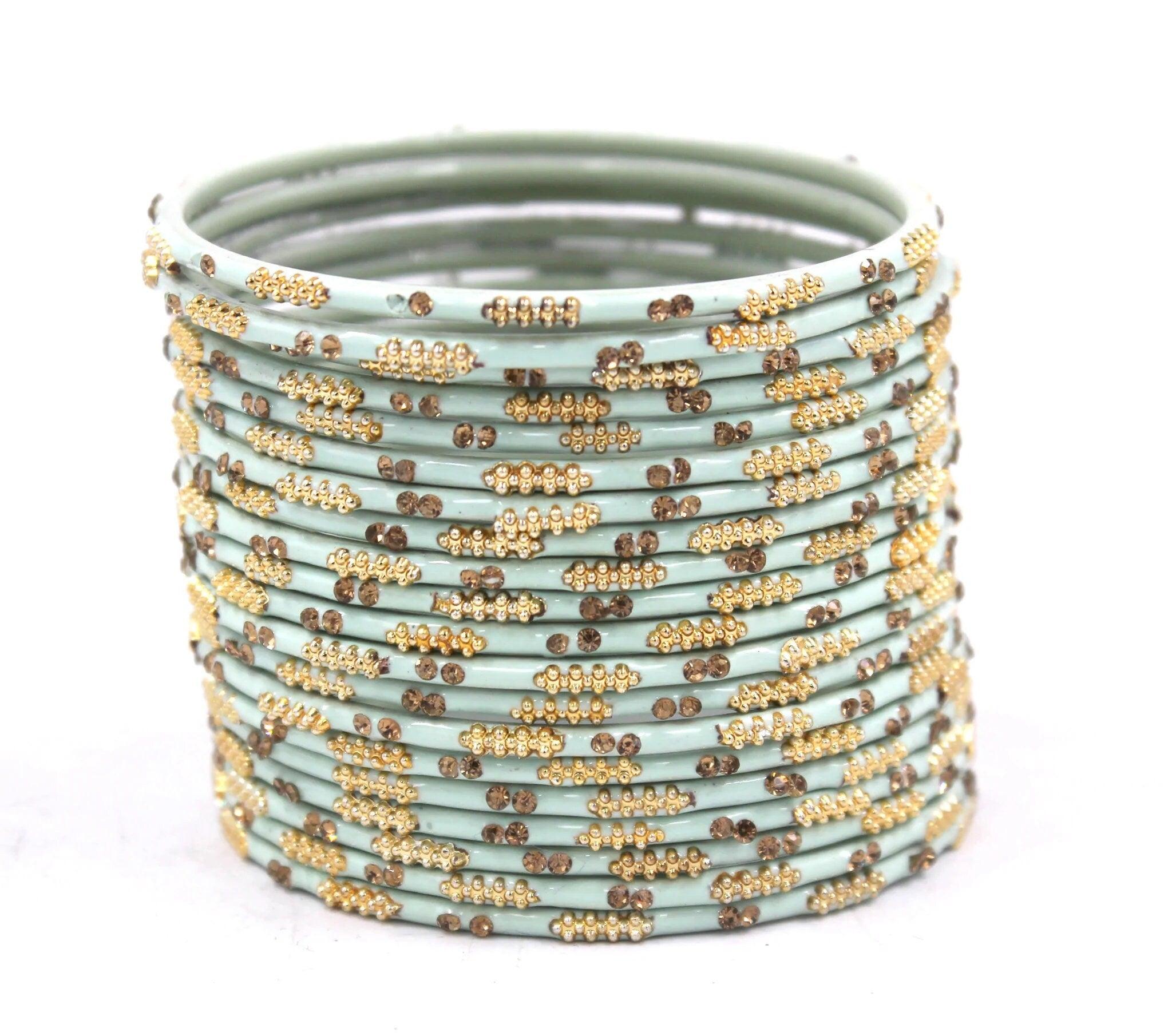 Indian Bangles Set 16 Meenakari Bangles Golden Stones, Indian Jewelry, Bangles Bridal Bangles for Women, Indian Bangles, Bollywood Jewelry