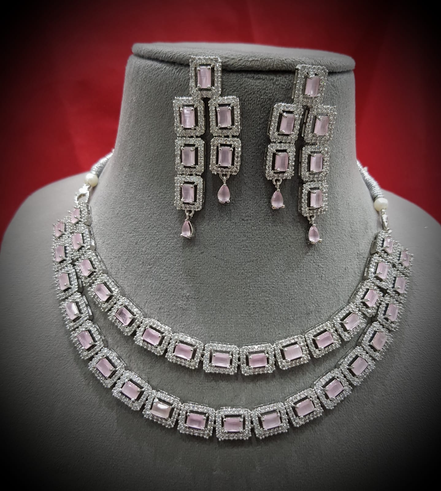 Layered Luxury Stunning Necklace Set Delicate American Diamond and Gemstone Design For Women American DIAMOND Choker NECKLACE Set Earring Combo Cz Stone Made Designer Indian Bridal Necklace Dangle Earring Fashion Jewellery