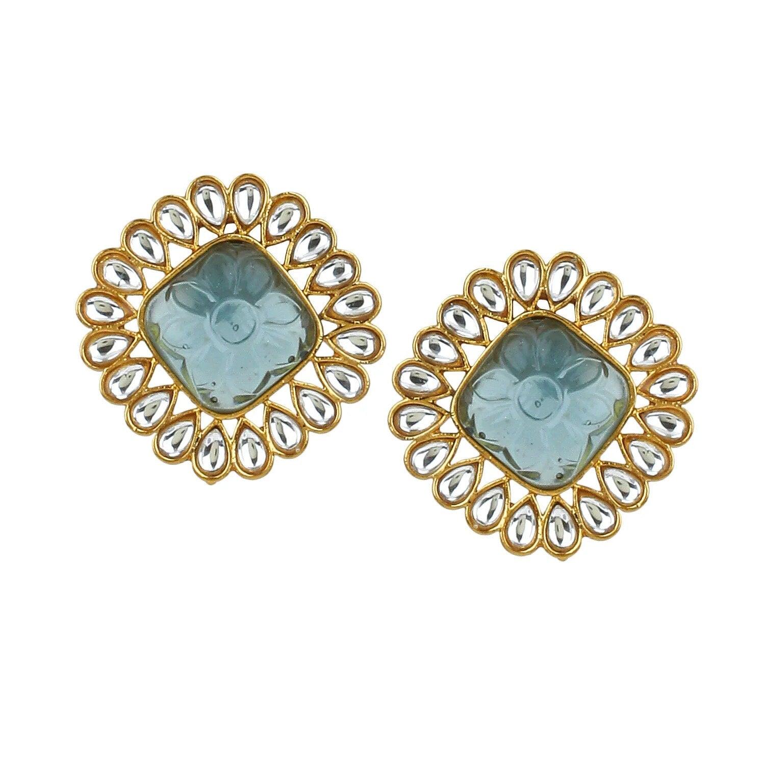 This is a traditional earring ideal to wear Indian Ethnic wear. It has a beautiful border embedded with Kundan stones with a rich-colored crystal stone in the center.