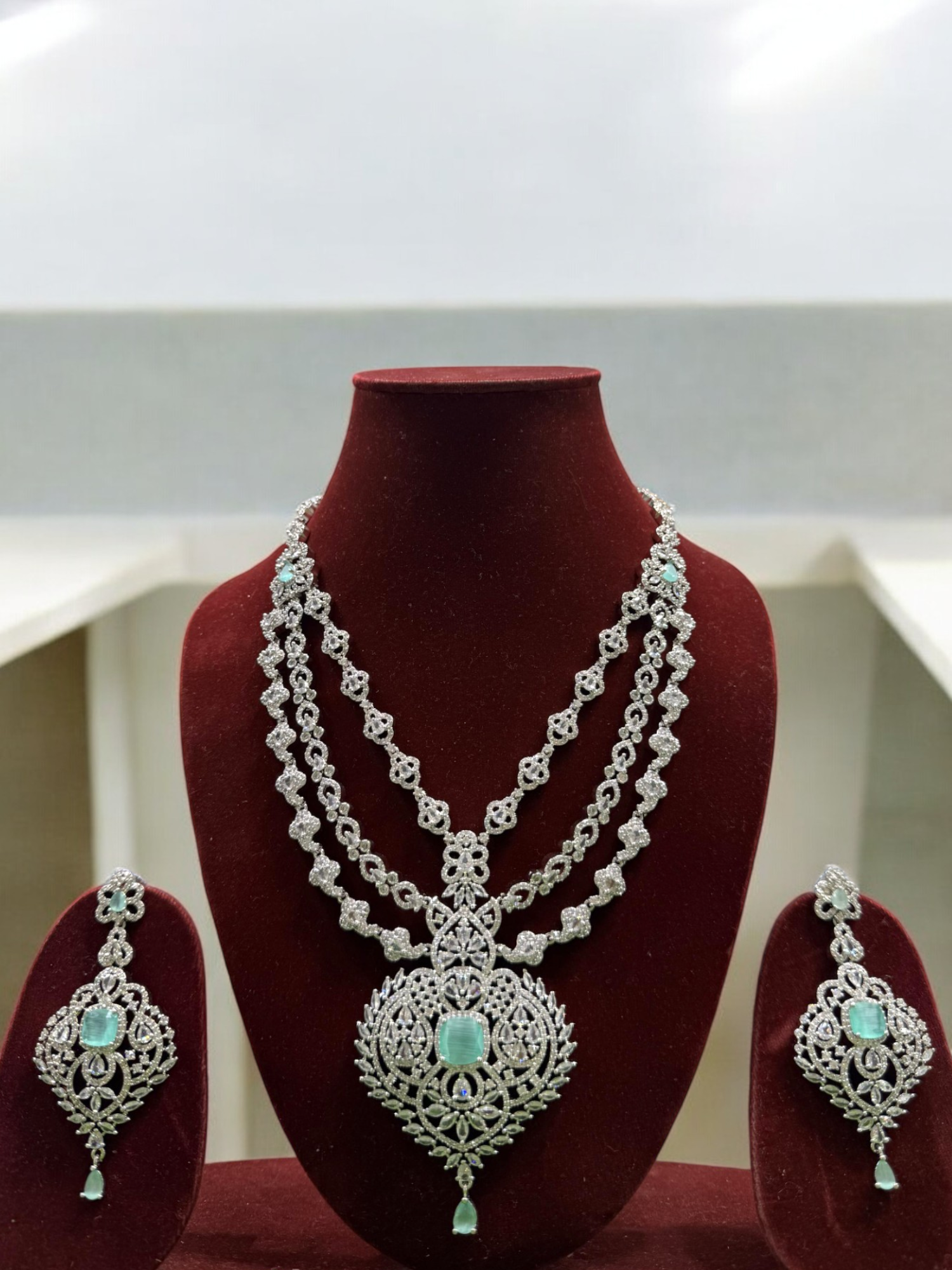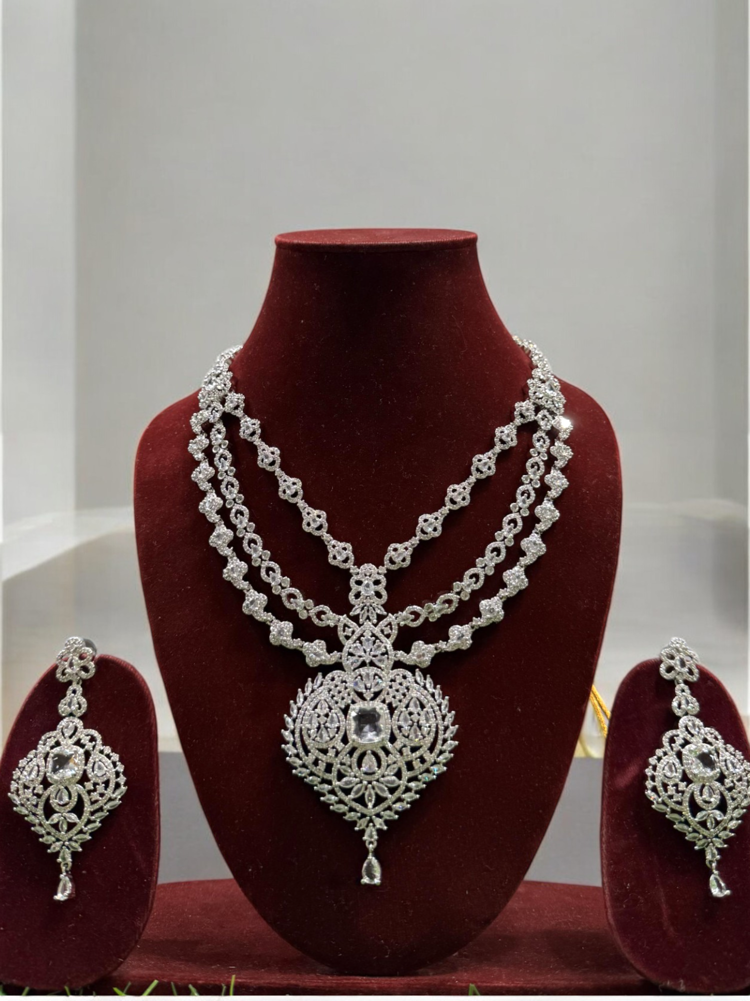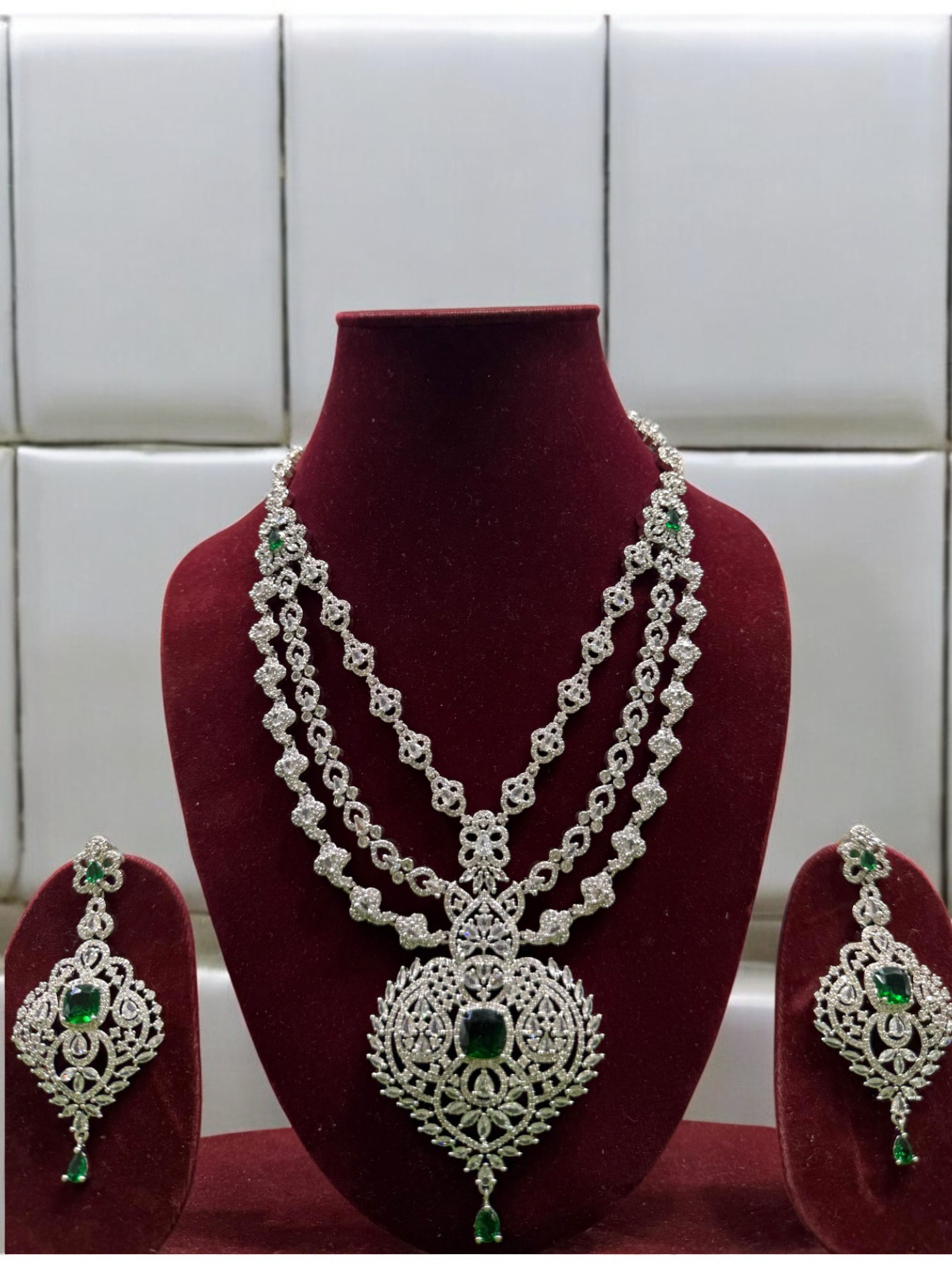 Three Layered Indian Sparkling AD Necklace Earring Set, CZ Layer Necklace Set, Multi Layer AD Jaipuri Necklace Jewelry Set, CZ Layer Jewelry Set