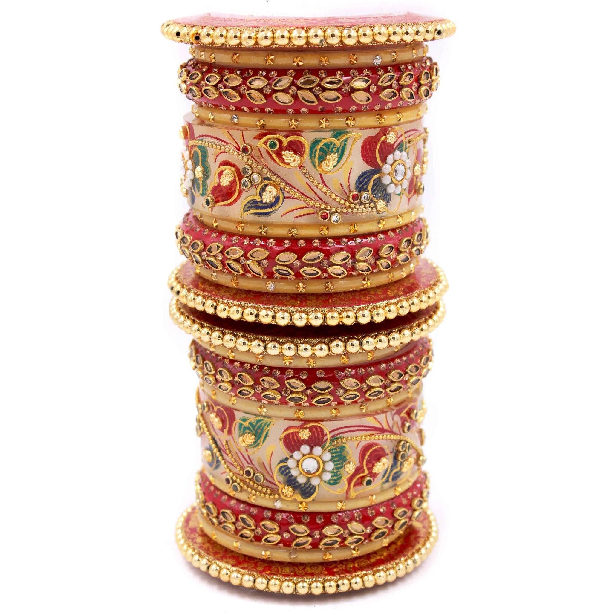 Traditional Rajwadi chuda, Bridal chuda, Dulhan Bridal Gold Beaded Bangles Set For Women and Girls, Jaipur Rajasthani Indian chura Set