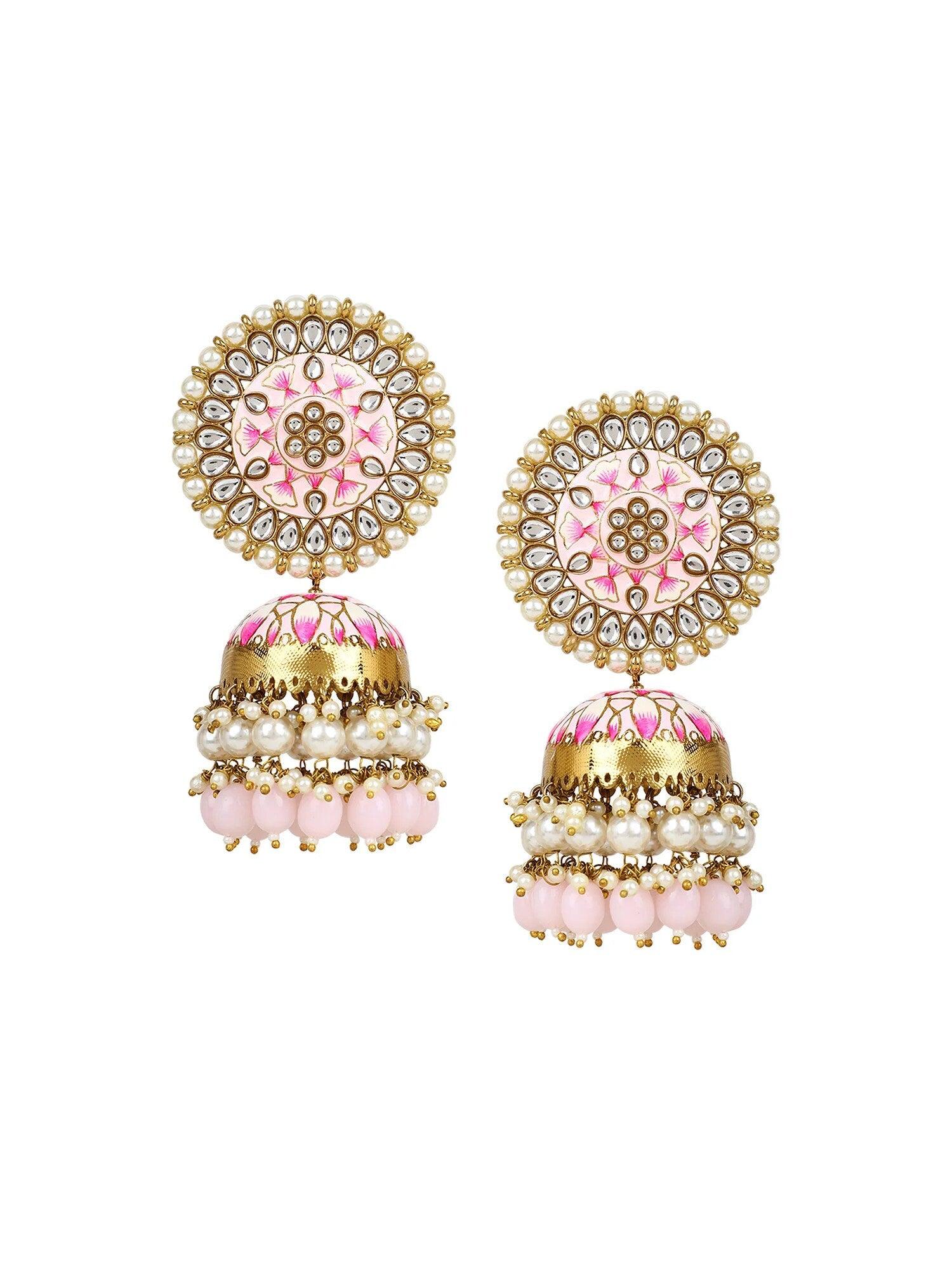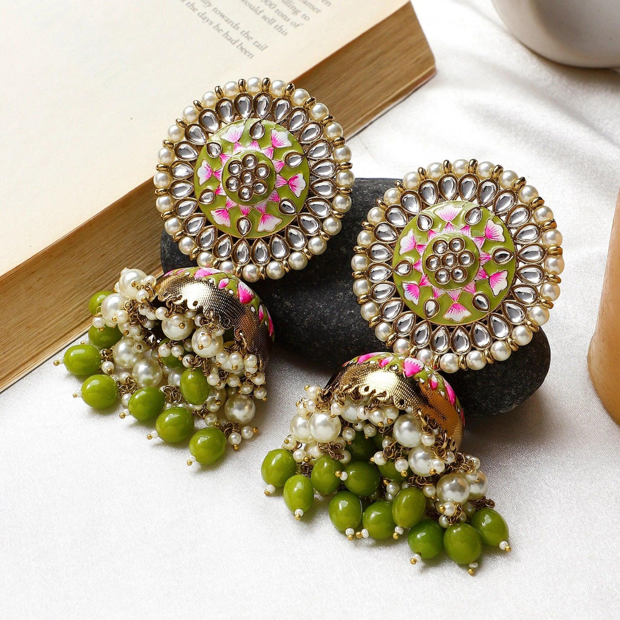 Meenakari Kundan Pearl Jhumka earrings, Pearl Jhumka, Bollywood Earrings, Pakistani Earrings, Kundan Jhumka, Punjabi Jewelry, Jhumkas