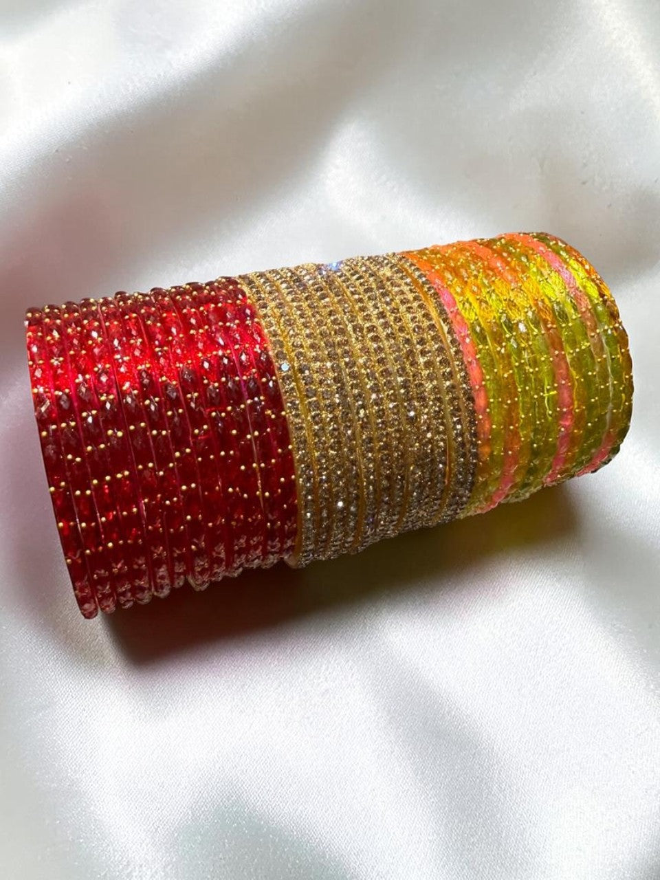 Enhance your traditional look with these beautifully crafted Gold Drop Glass Bangles with Moti Design 💫