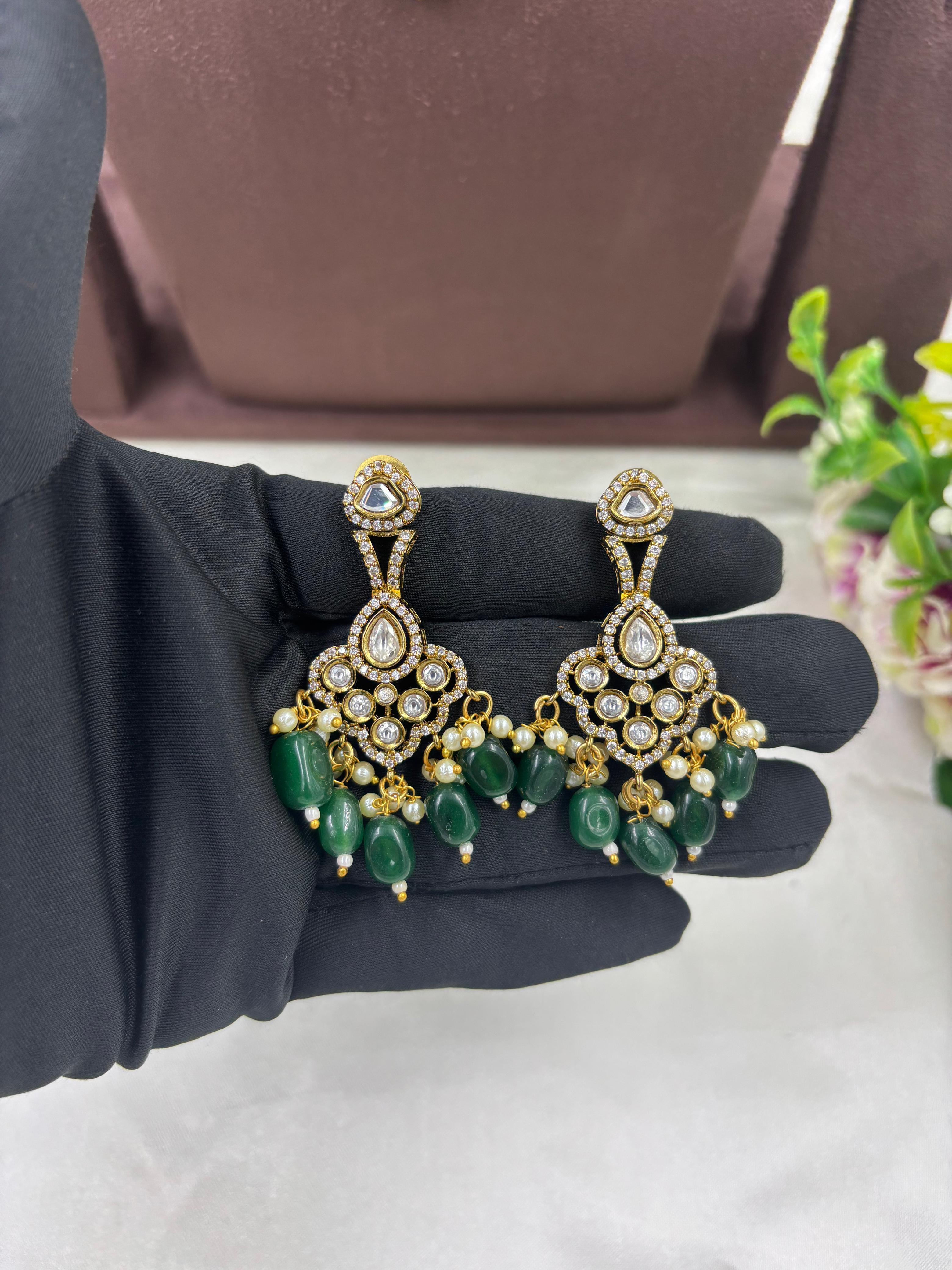 Elevate your traditional look with this exquisite Kundan Necklace Set featuring intricate craftsmanship and luxurious green bead detailing. Perfectly designed for brides, festive celebrations, or ethnic occasions, this set includes a stunning choker-style necklace and matching earrings that blend classic charm with royal elegance