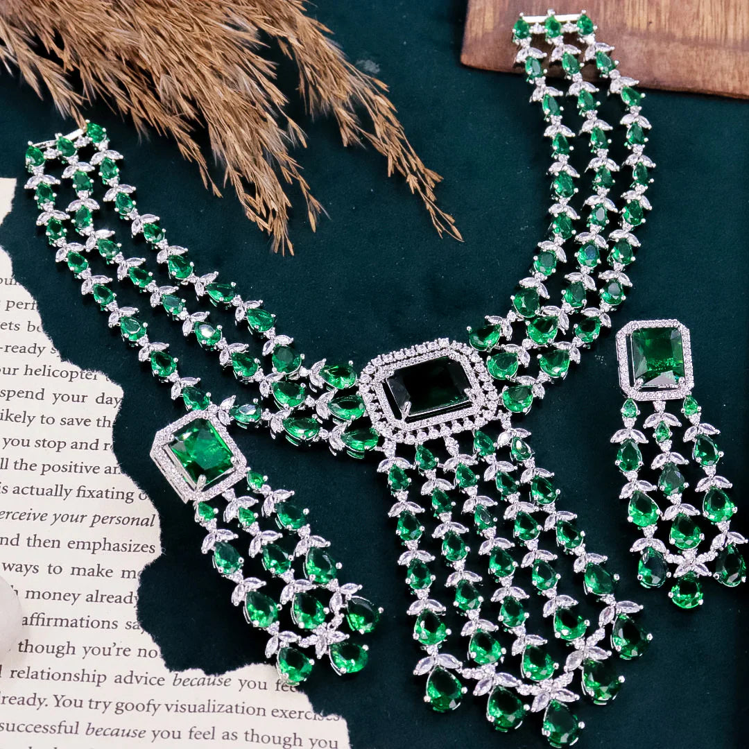 Add a touch of glamour and sophistication with this high quality necklace set in beautiful clear stones. The stones in this set bling and look close to the real thing. This set is sure to make heads turn!